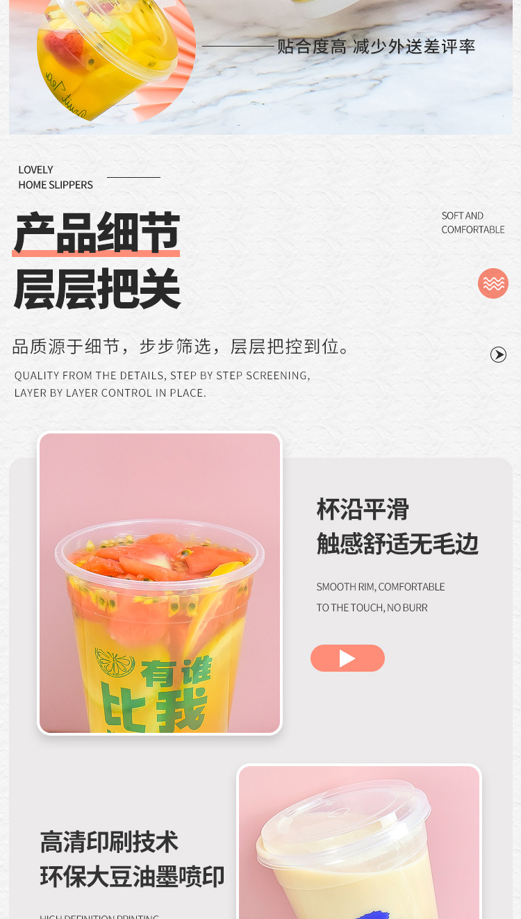 使い捨て1000mlプラスチックミルクティーカップ1リットル果物カップ120口径覇王射出カップ印刷ロゴ