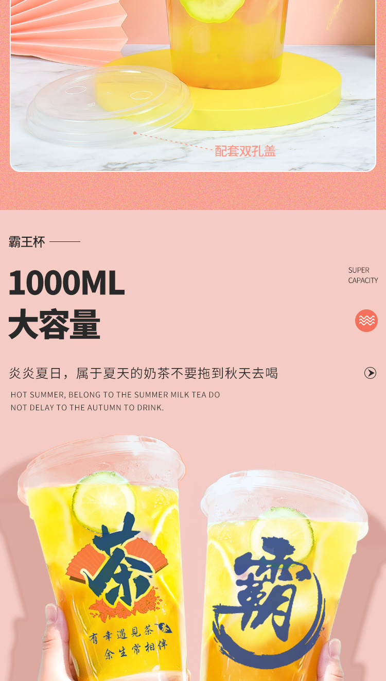 柠檬茶霸王杯一次性加厚磨砂杯1000ml奶茶杯带盖网红水果茶杯现货