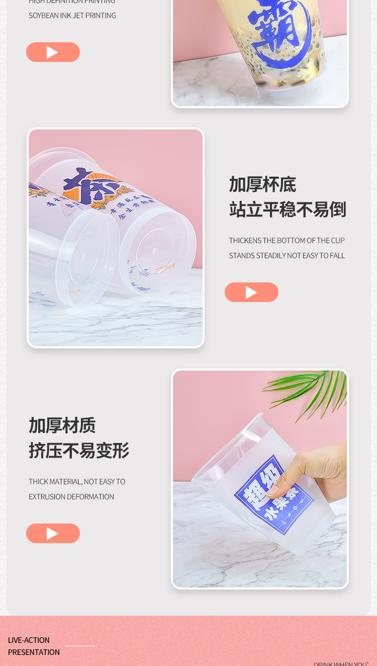 平底使い捨てミルクティーカップ マット加工 厚手PP射出成形 バオミンカップ ミルクティーショップ フルーツティーカップ 1000ml