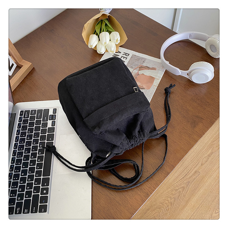 レトロなシングルショルダーキャンバスバッグ、女性用斜め掛け無地ミニバッグ、巾着式2025年新作バケットバッグ、アーティスティックスタイル