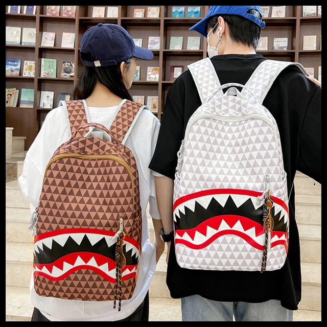 跨境双肩包女休闲商务鲨鱼印花背包男大容量户外旅行校园学生书包