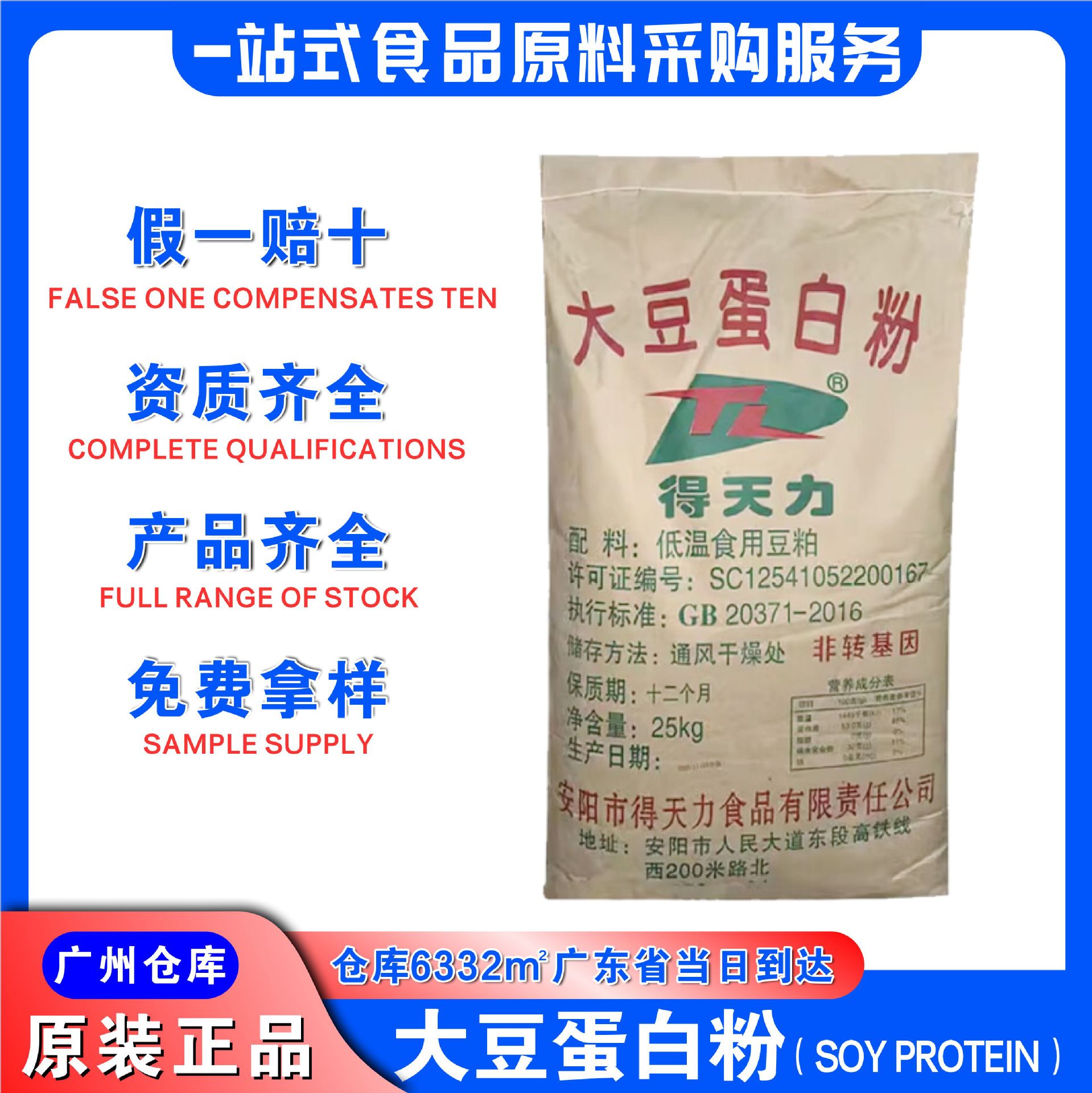 Tiandili 大豆プロテインパウダー 50% 含有広東省スポット卸売食品グレード Tiandili 大豆プロテインパウダー