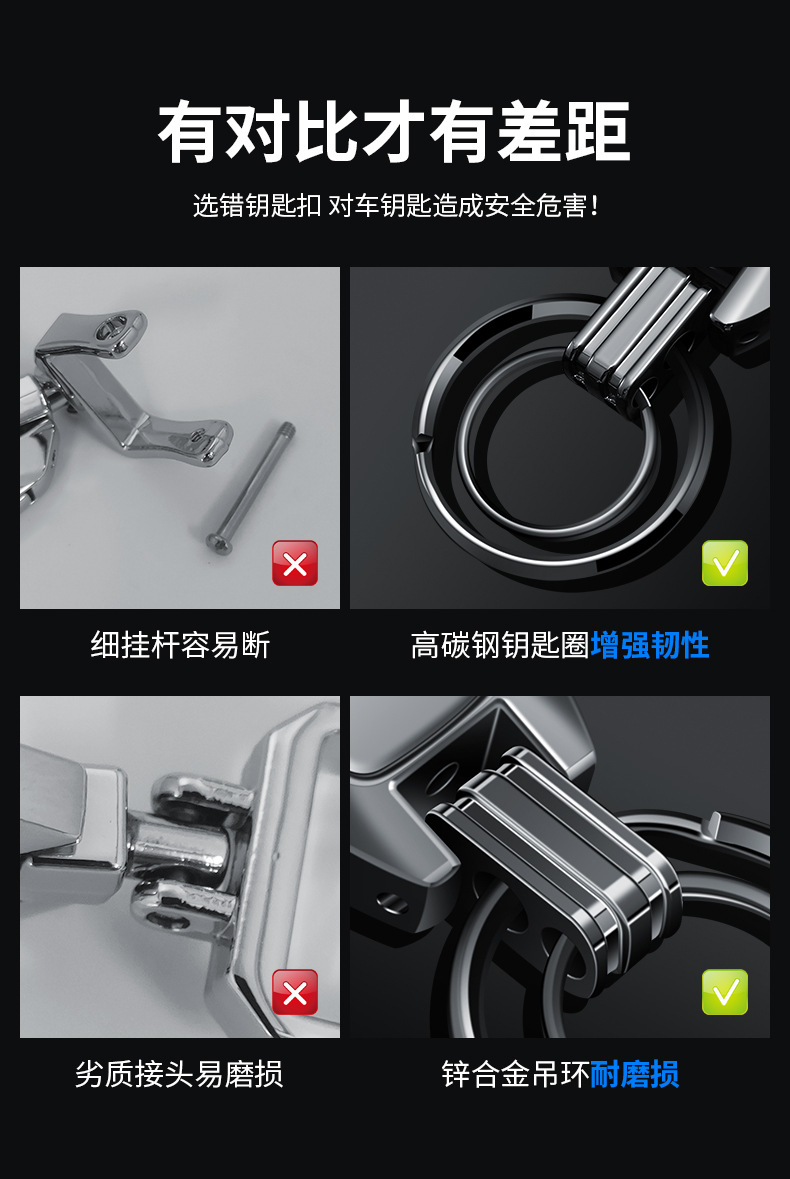 色分類 【ガングレー】合金二重リングキーホルダー,【明るい銀色】合金双環キーホルダー
