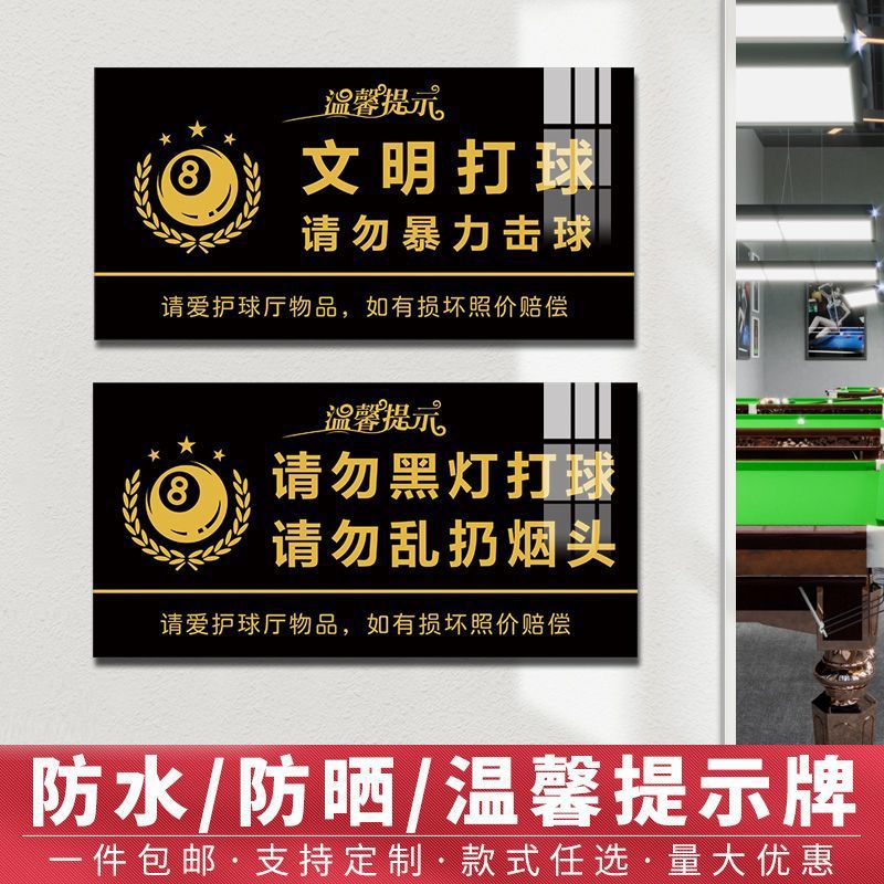ビリヤード場の案内板、ビリヤードルーム用品、温かいメッセージ、警告板、禁止、暗闇で遊ぶのはやめてください、文明的に遊んでください