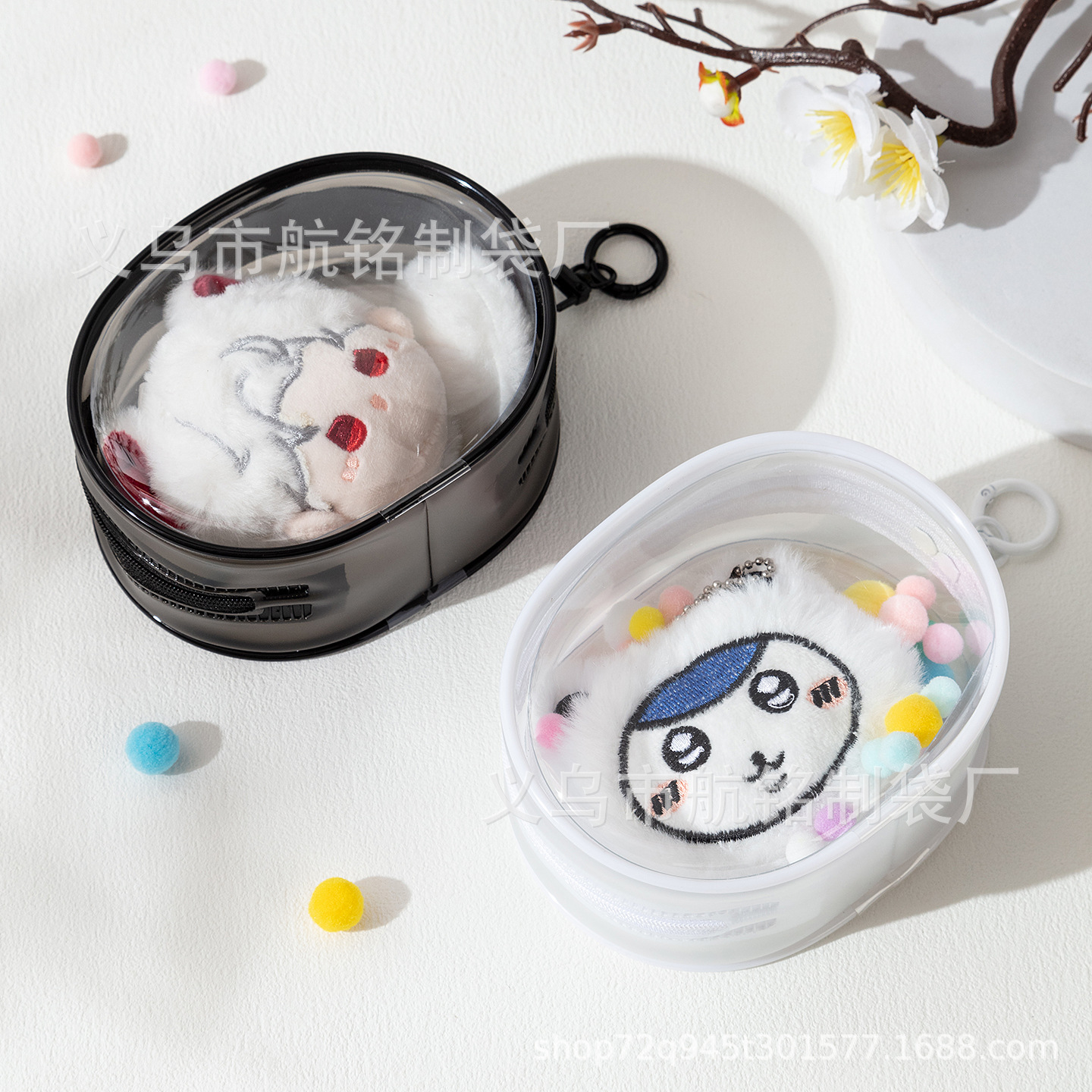 PVC製ドールバッグ 愛情深く深い10cm団子型収納バッグ 外出展示用 赤ちゃん連れ歩き用ペンダント 綿人形用透明収納