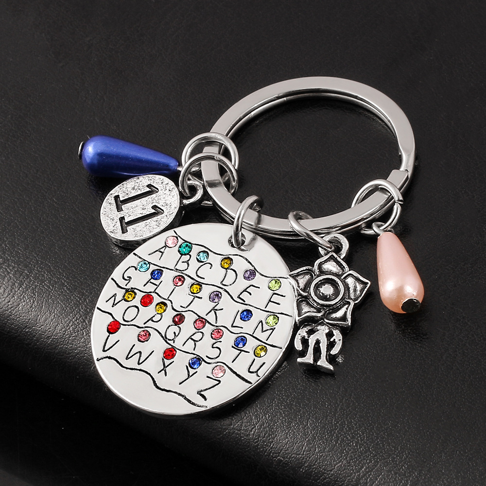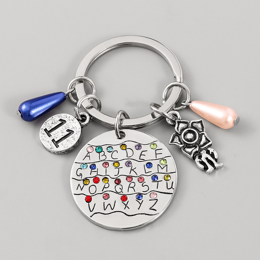 国境を越えた奇妙な物語のアルファベットのキーホルダー金属アルファベットのキーホルダーdiy車の鍵アクセサリー卸売り