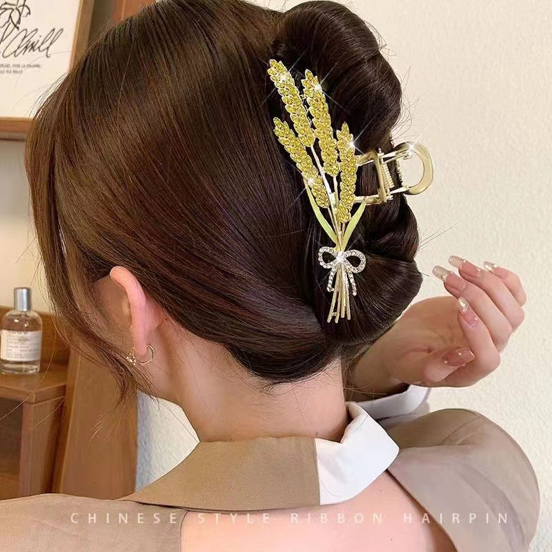 大麦穂高級感ヘアクリップ後頭部ヘアクリップ女性ヘアクリップ夏大優雅サメクリップ頭飾り