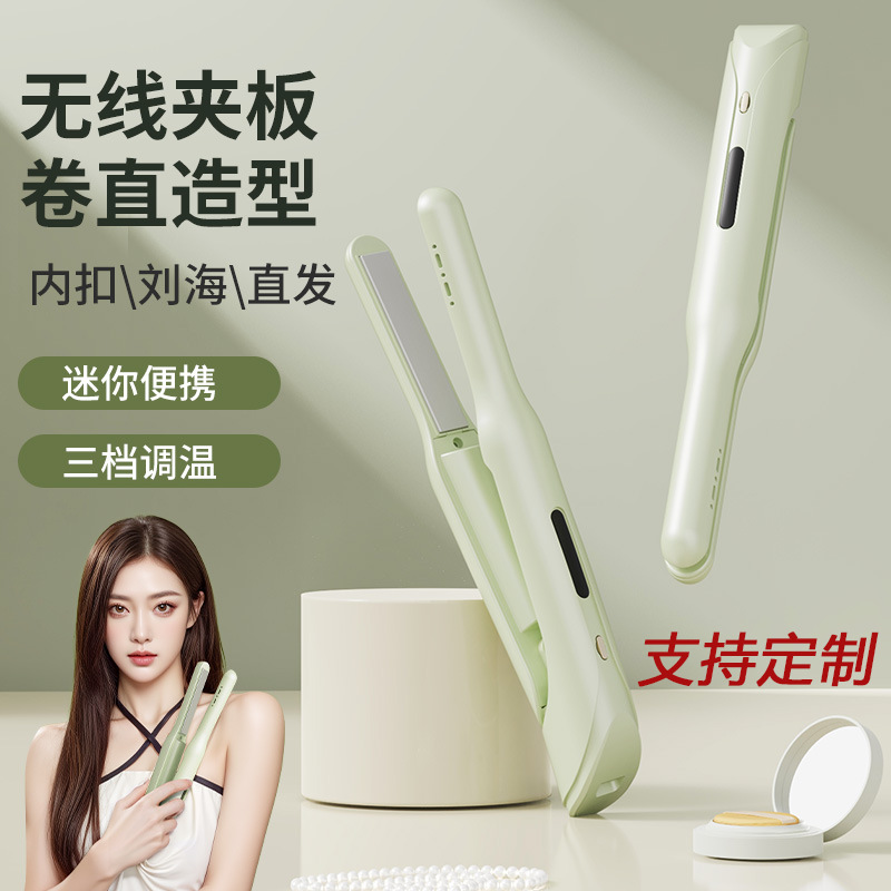新型クロスボーダー巻き髪・ストレート両用小型充電式ヘアアイロン、ショートヘア用カールアイロン、充電式ポータブルストレートアイロン