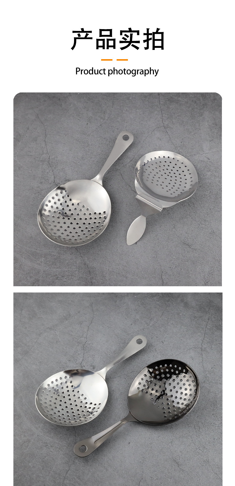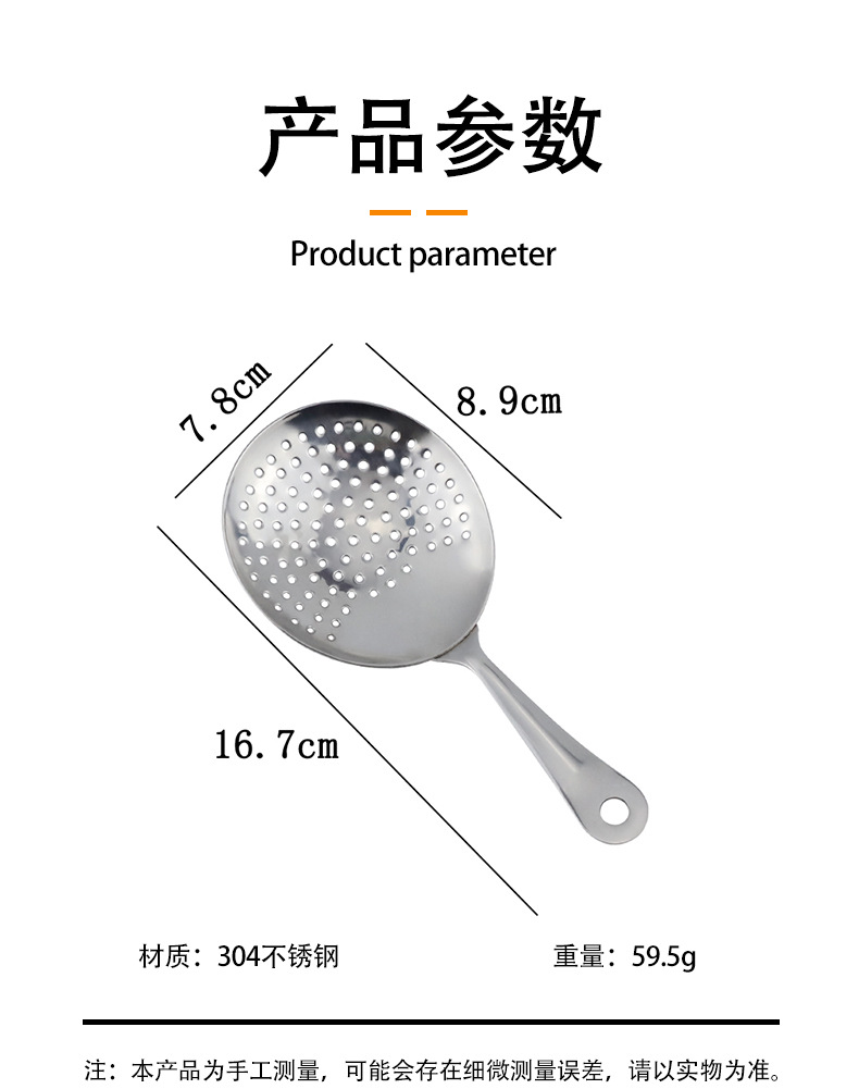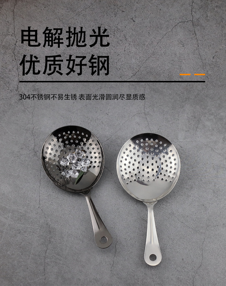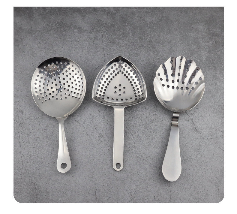 304ステンレス製フィルタースプーン卸売 中空カクテルアーティザンスプーン キューブシュガースクープ バーテンダーツール