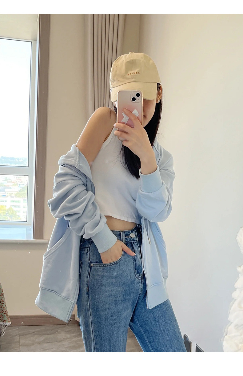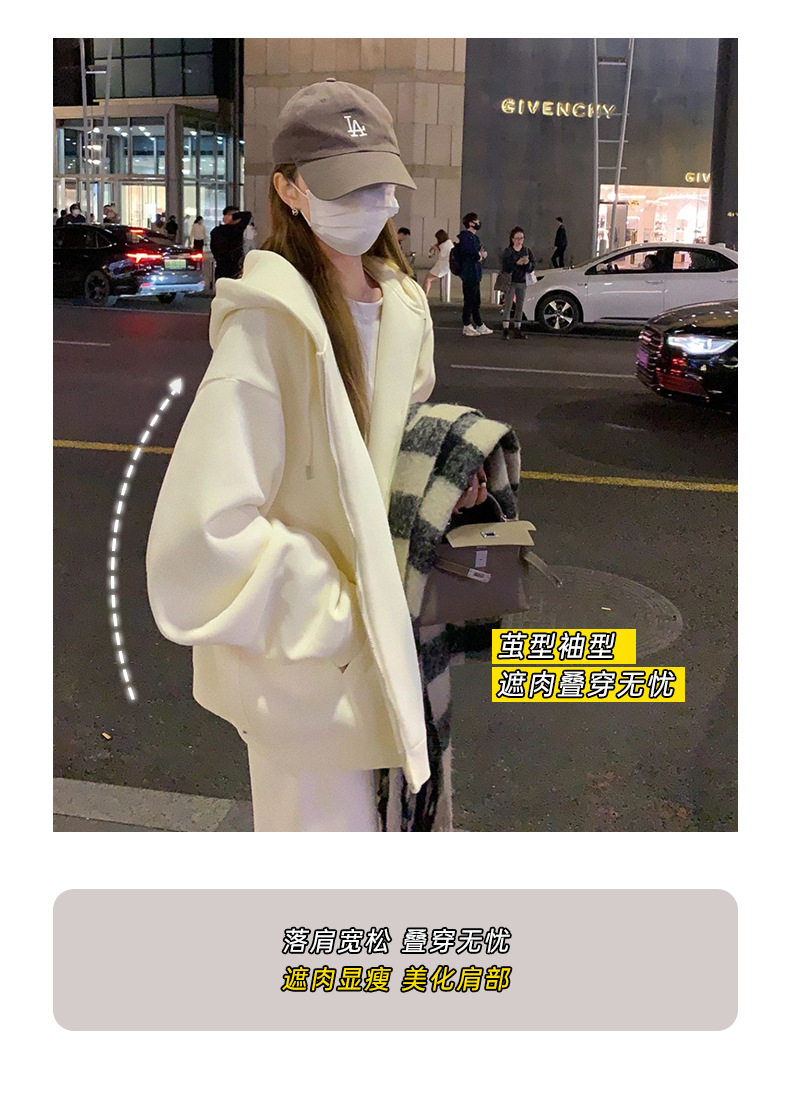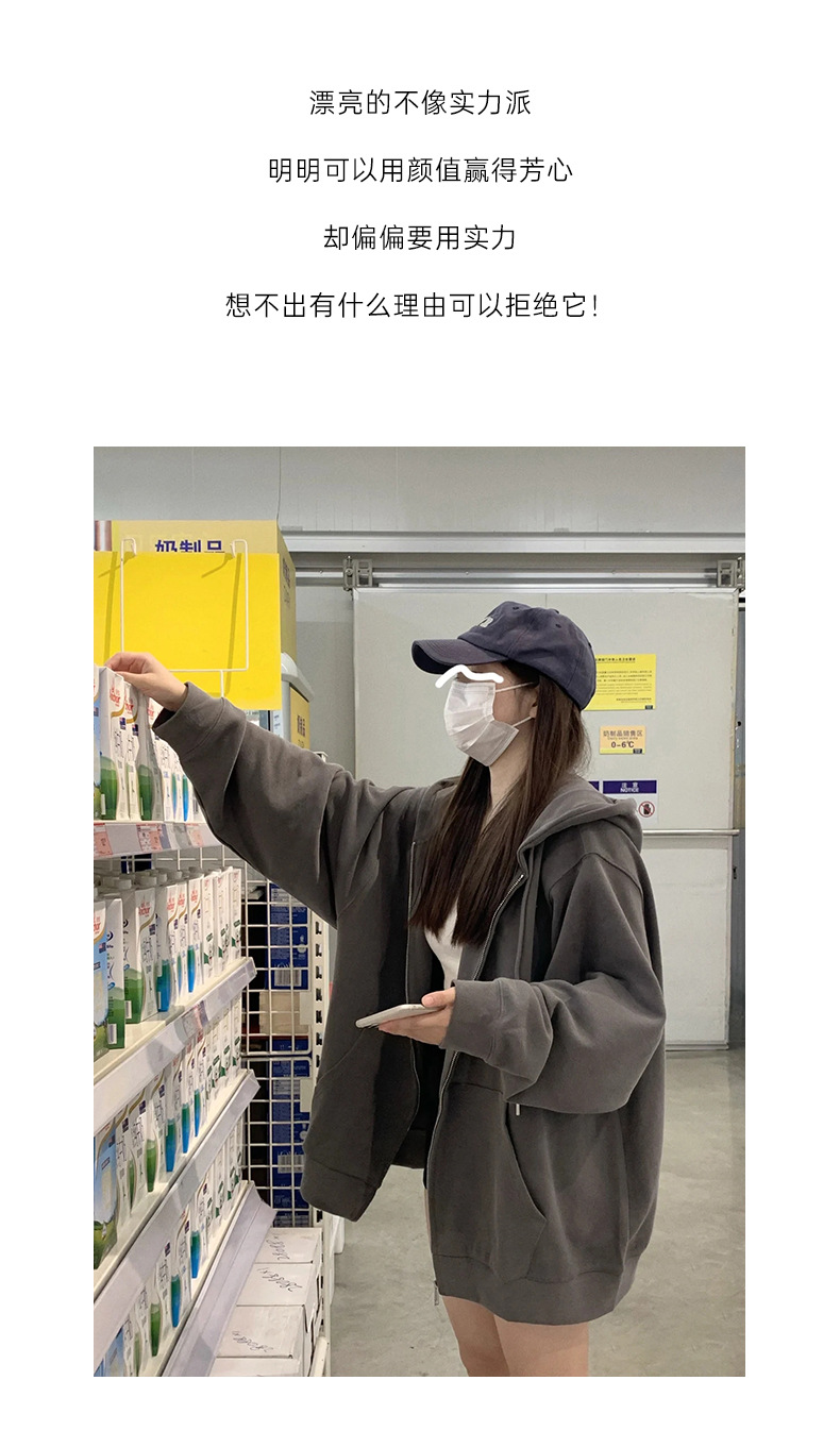 山東省 Jimo 春と秋のジャケットの女性のフード付き肥厚カーディガン 2025 新しいホットスタイルスポーツジッパースウェットシャツ