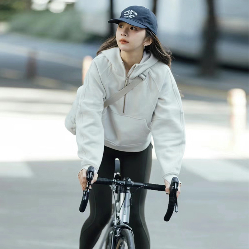 同じスタイルのコートハーフジッパーレディースフード付き春ショートヨガトップ 2025 Jimo Shandong スウェットシャツ