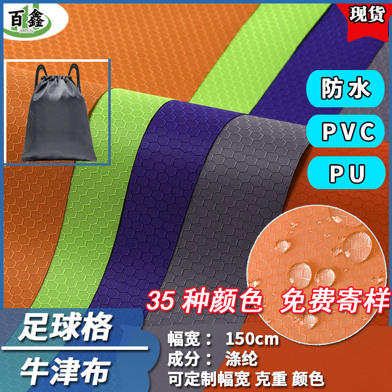 现货足球格牛津布防水PU涂层箱包束口袋面料PVC涤纶蜂巢格布料
