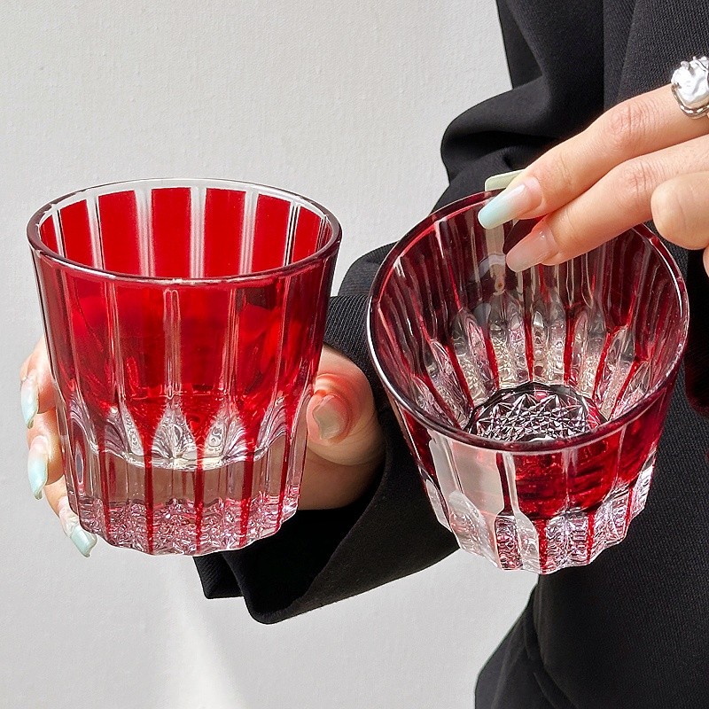 大衆デザイン感赤星芒グラスシャンパングラスレトロウイスキーグラス江戸切子杯洋杯