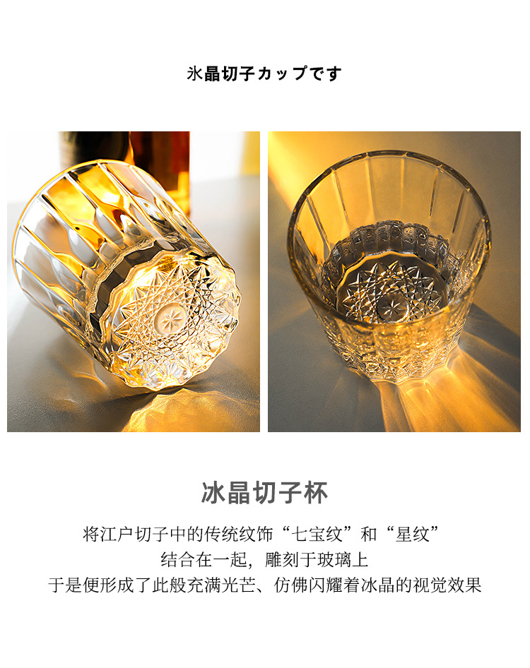 江戸切子星芒カップ クリスタルガラス製 ウイスキーグラス 家庭用 ギフト 工芸品 高級感 日本風