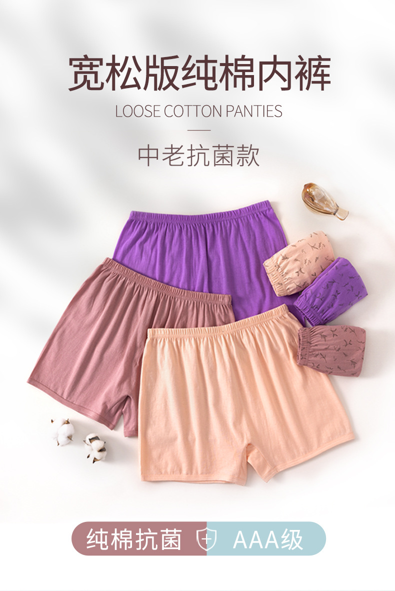 ママ用三角パンツ、純綿、女性用薄手大きいサイズハイウエストショーツ、おばあちゃん用綿パンツ、抗菌純綿股間