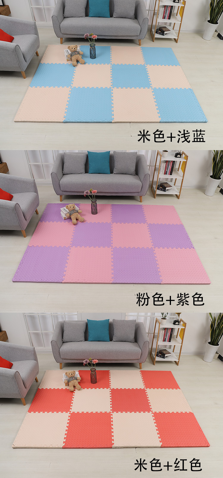 卸売りは発泡マットを厚くして60*60のわずかな欠陥の二級発泡マットの子供をつなぎ合わせて赤ちゃんの爬行マットを敷く