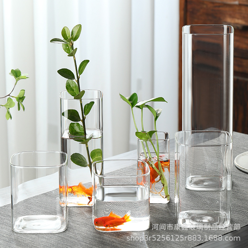 透明方形高ホウケイ酸ガラス水培植物瓶家庭用置物花屋花桶芸術生け花花瓶