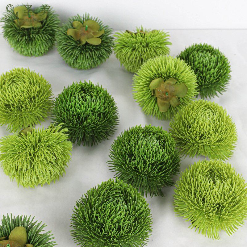 シミュレーション緑の石竹の花の頭の緑の毛玉の緑の植栽の置物の創意的な家庭の客間のデスクトップの装飾はボールのコケを刺します。