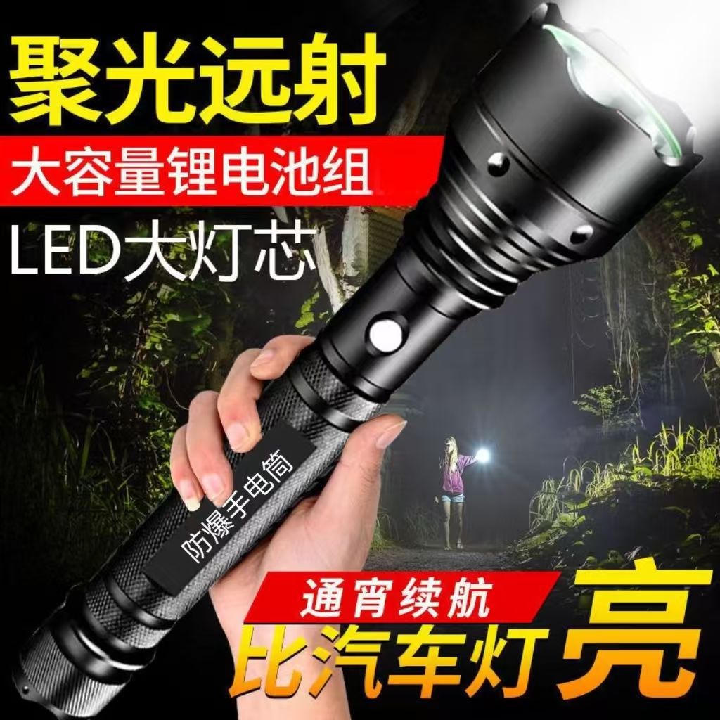 防爆超亮充電可能懐中電灯強光遠射長待機大電力家庭用屋外釣り防水灯