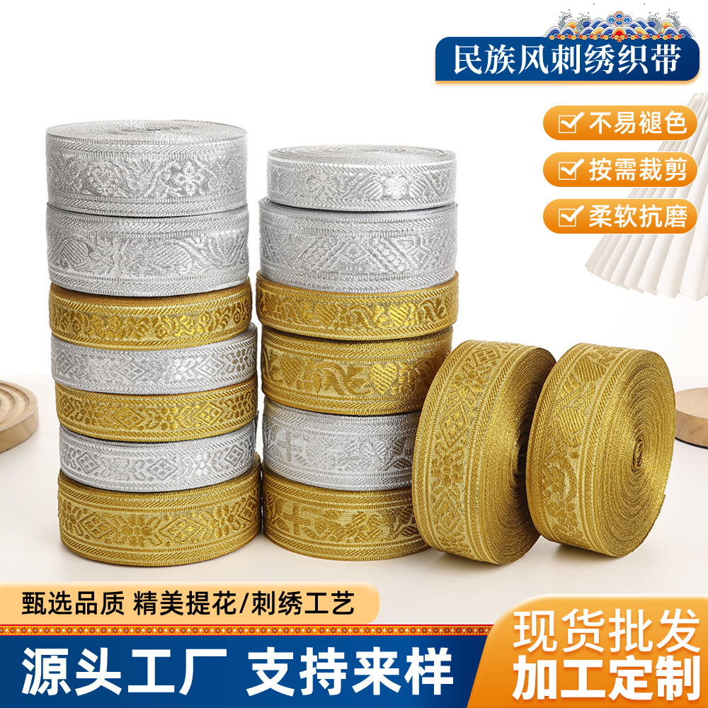 卸売り金銀糸ジャカードリボン民族風ジャカードリボン服装舞台家紡織抱枕装飾辺編み帯