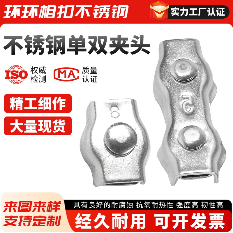 304不锈钢钢丝绳单夹双夹卡扣锁扣板式单卡双卡绳固定接头紧固夹