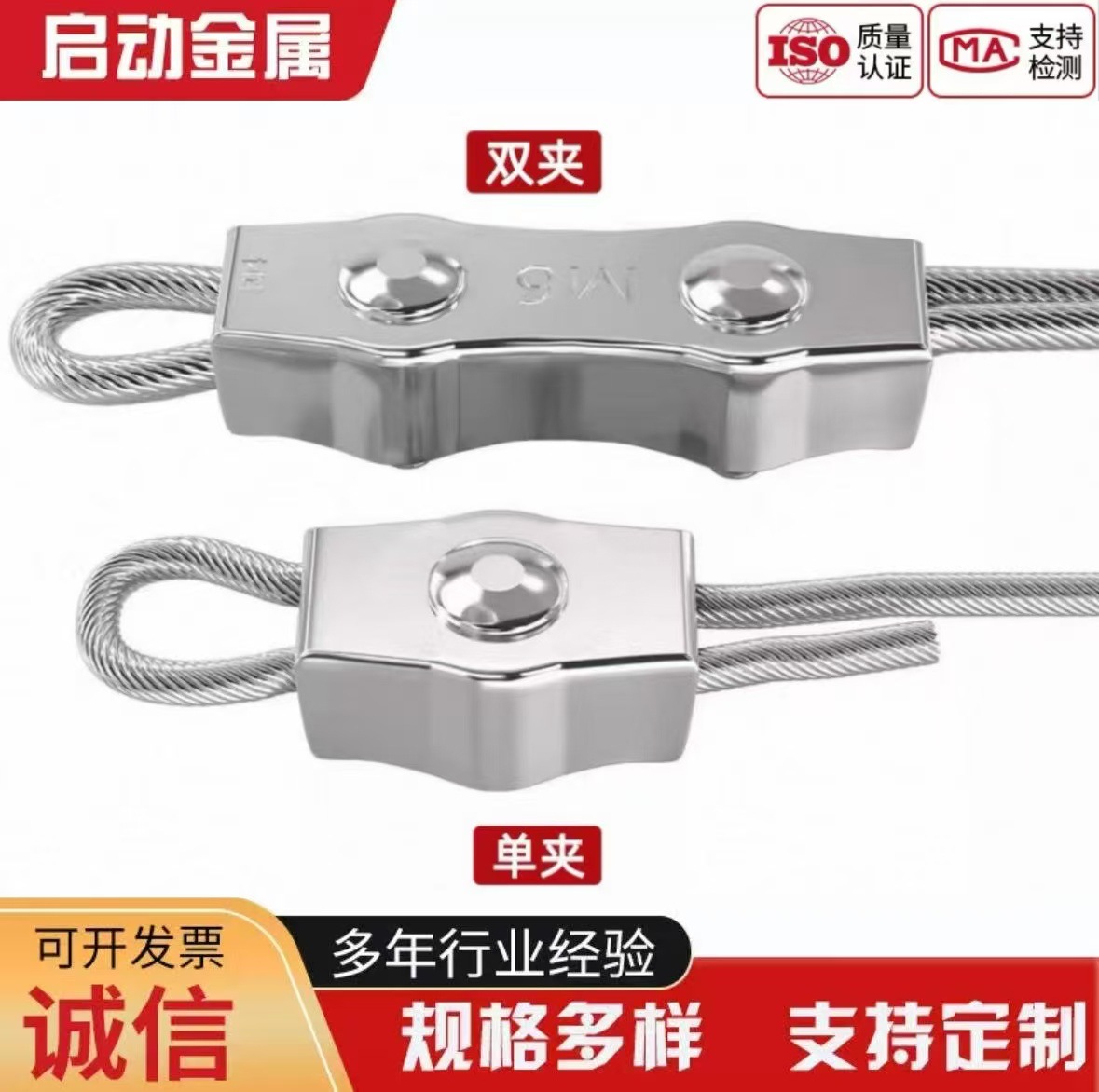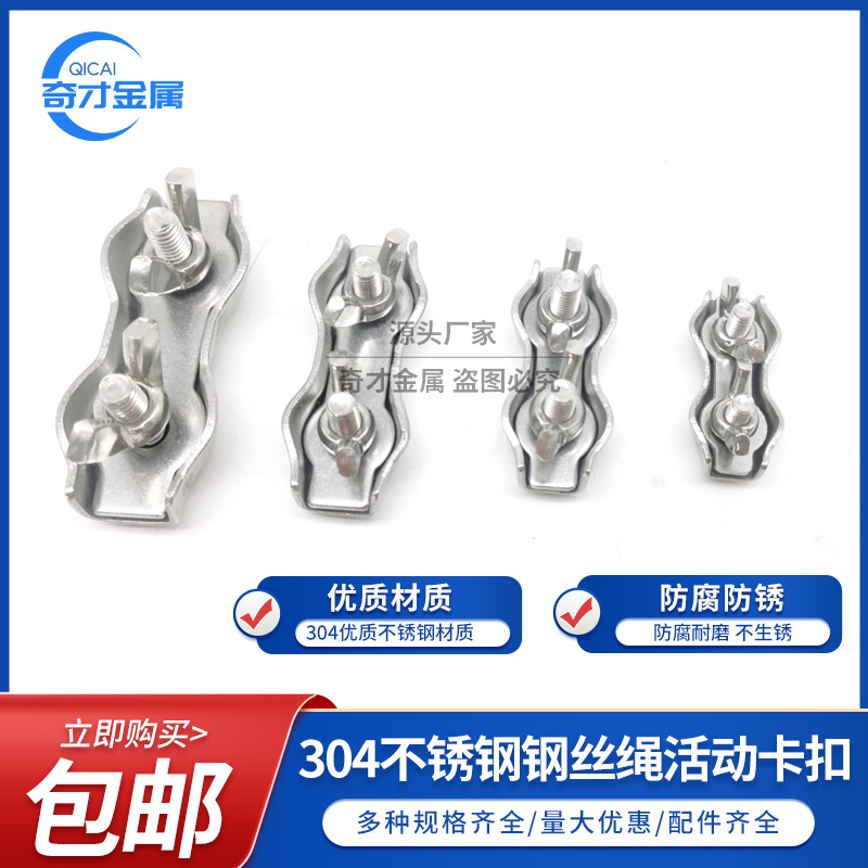 304不锈钢钢丝绳卡扣锁扣 钢丝绳单夹双夹 板式单卡双卡固定接头