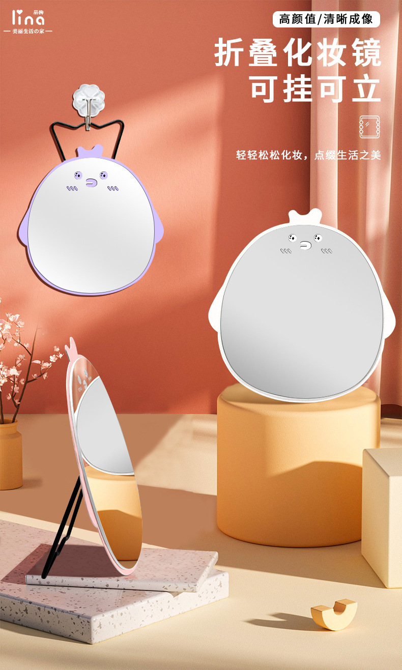 Ins学生寮木製折り畳み式デスクトップ携帯鏡化粧鏡学生デスクトップ化粧鏡家庭用