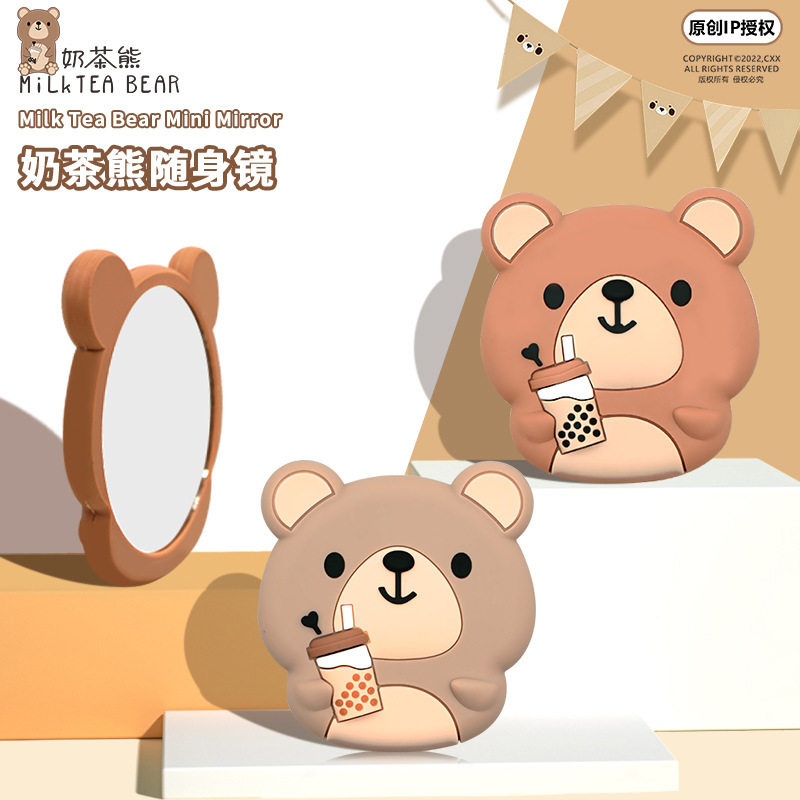 リナ携帯型ミルクティー熊ミニ化粧鏡円形かわいいアニメ携帯角型鏡両面鏡