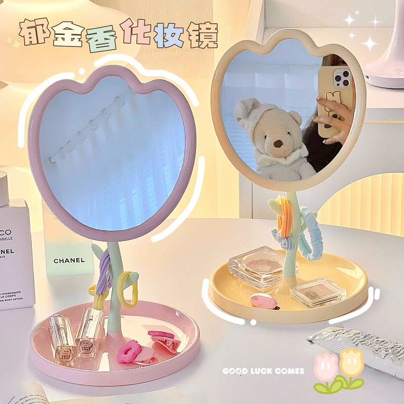 郁金香化妆镜塑料桌面台式家用收纳家居梳妆台奶油简约高级镜子