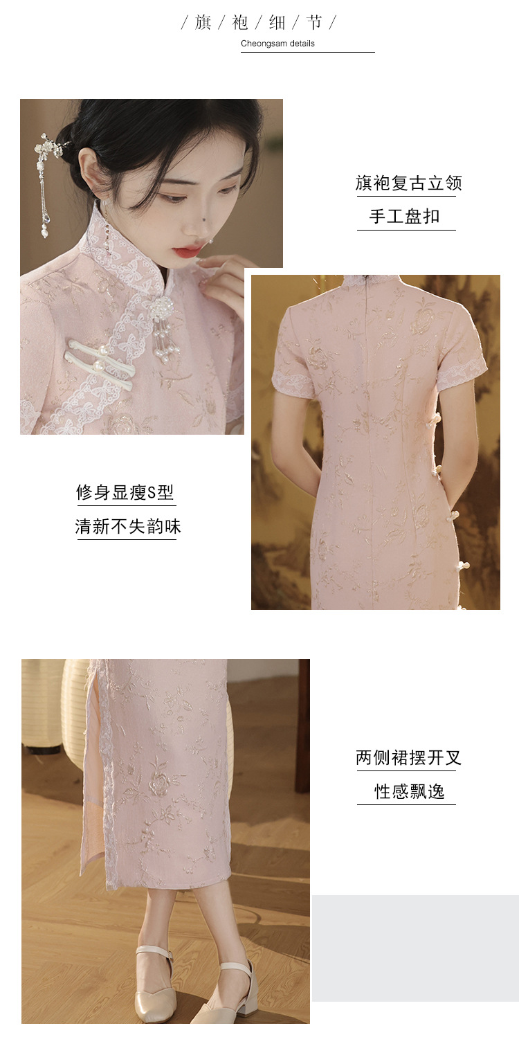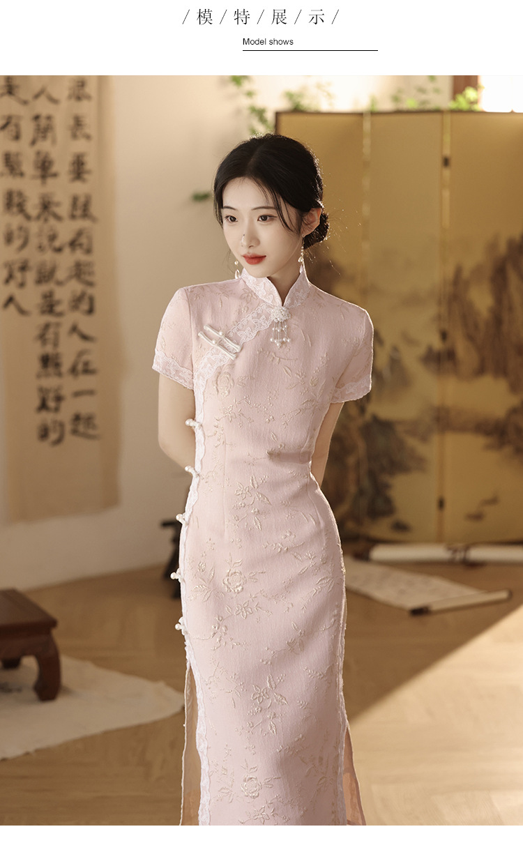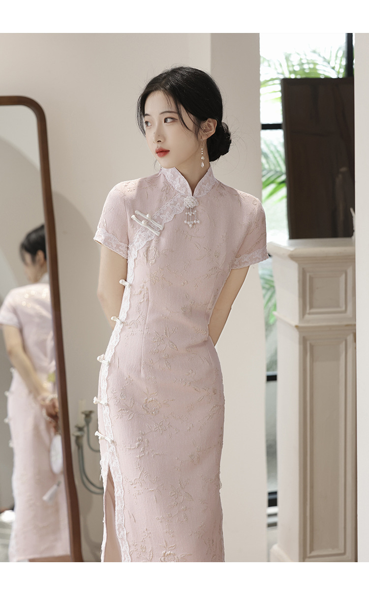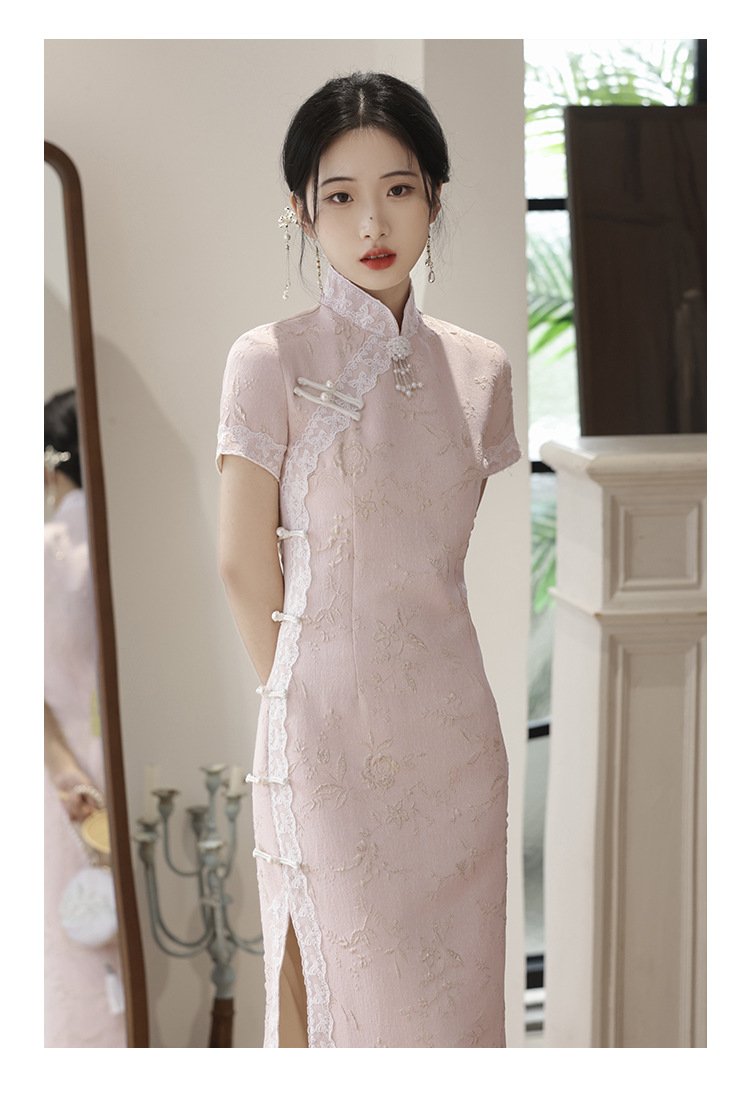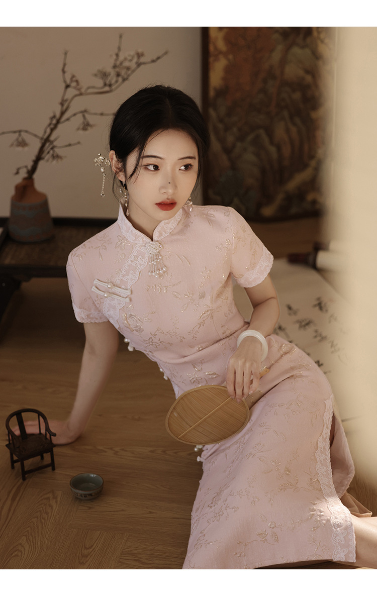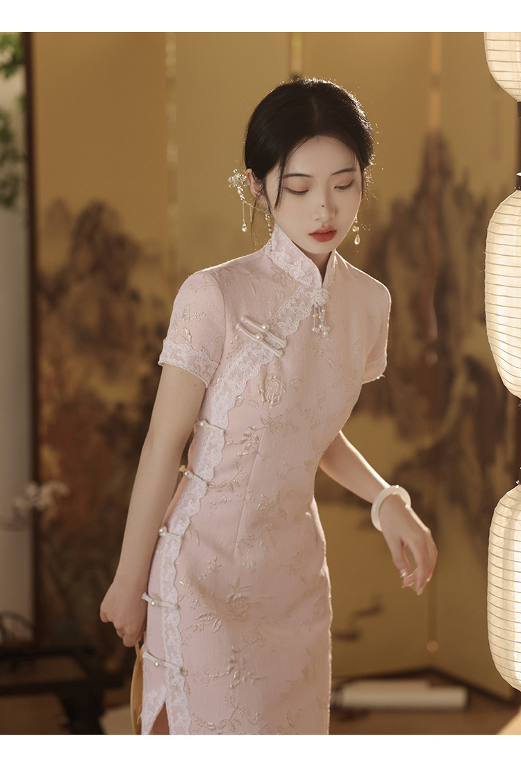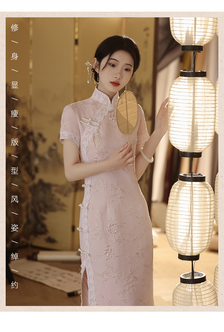 ピンクのチャイナドレスの夏の新商品は2024年の若いタイプの少女民国風の婦人服の新しい中国式の日常は着ることができます。