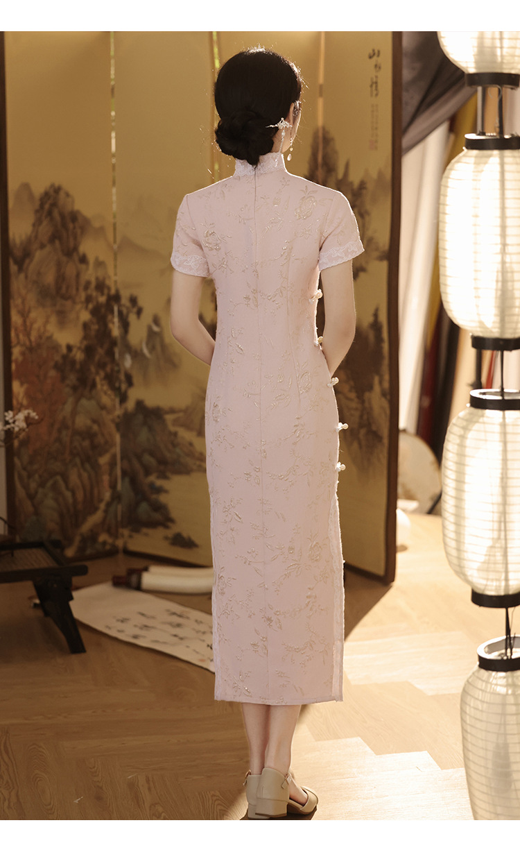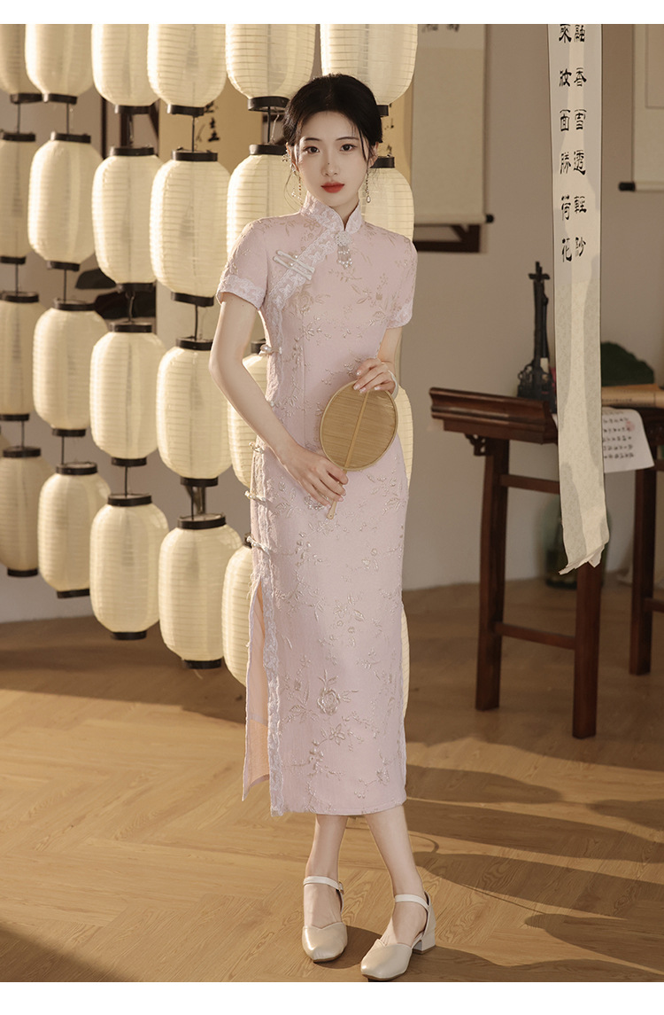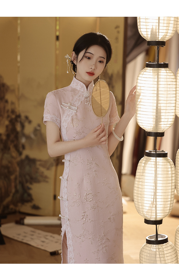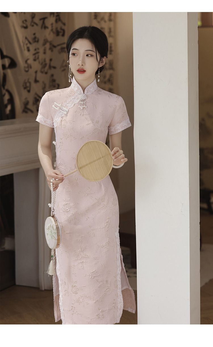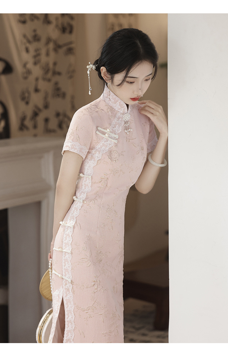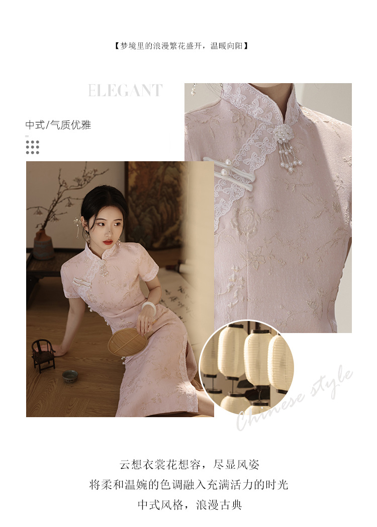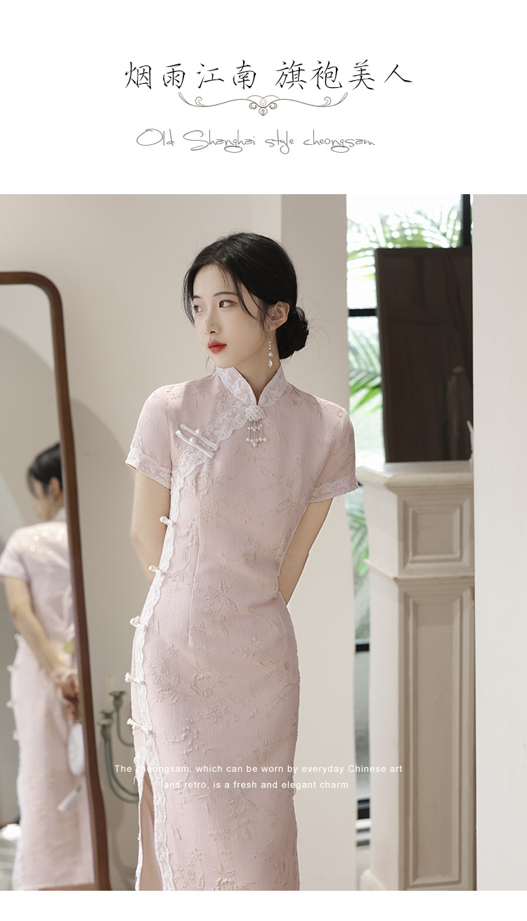 ピンクのチャイナドレスの夏の新商品は2024年の若いタイプの少女民国風の婦人服の新しい中国式の日常は着ることができます。