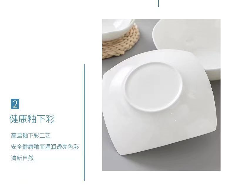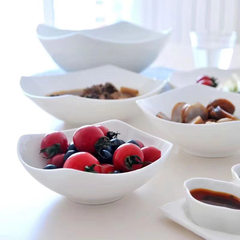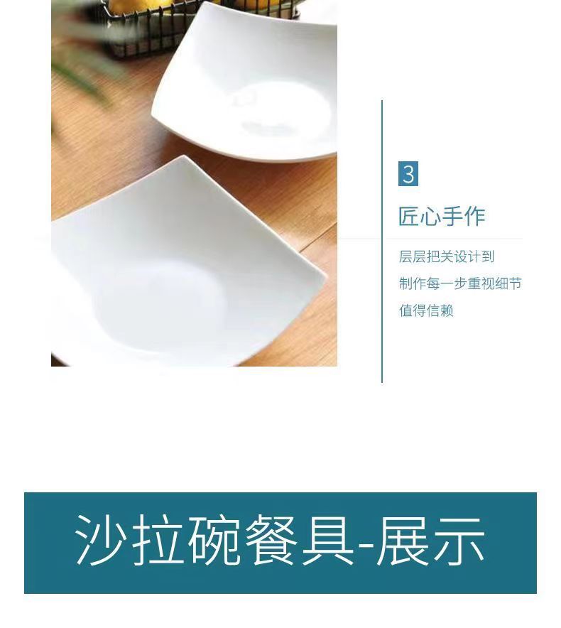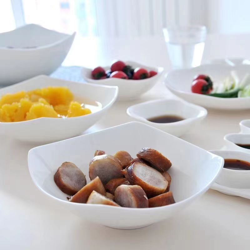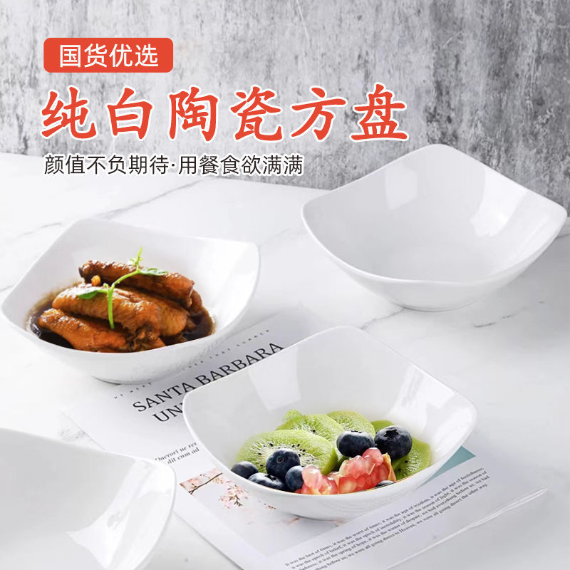 純白四角家庭用模造陶磁器碗皿サラダ碗スープ皿創意料理皿シンプルなネット赤皿