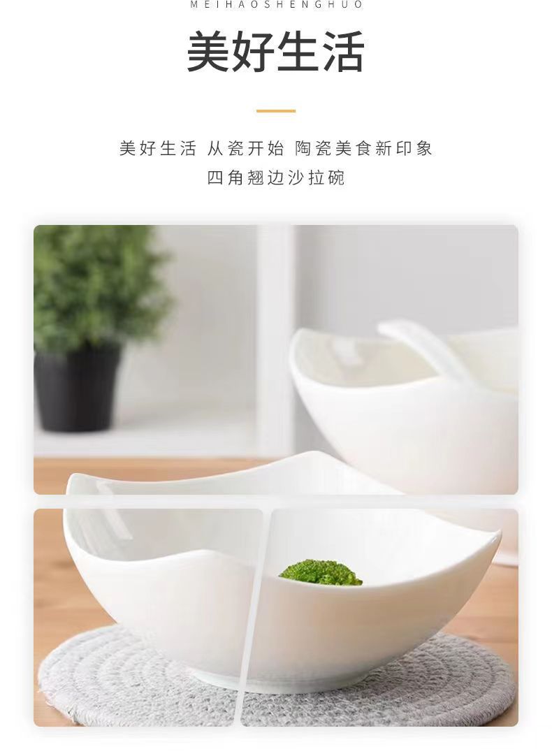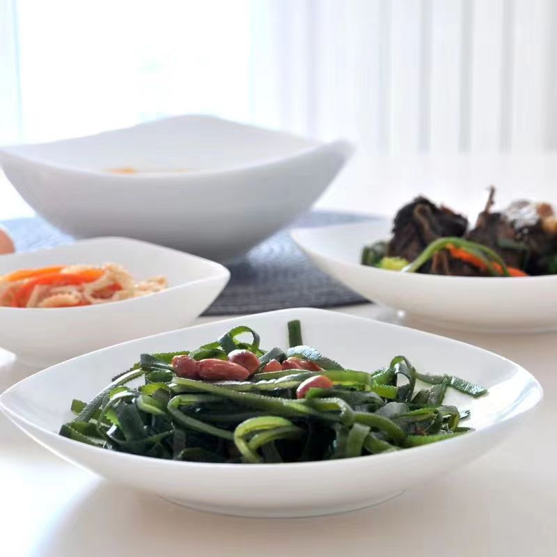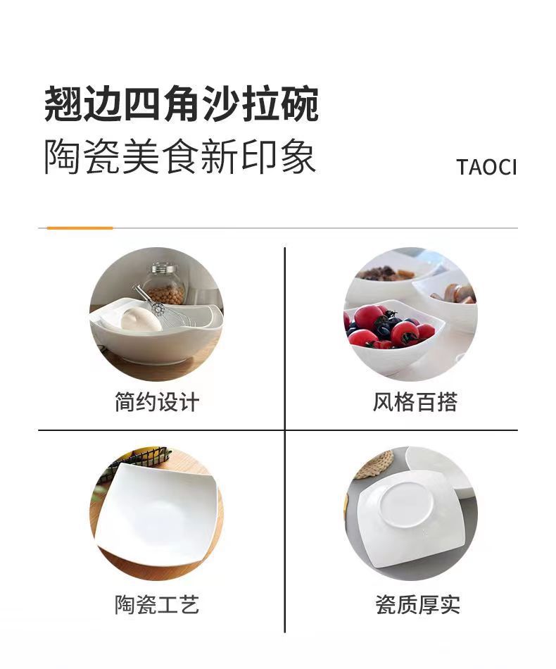 【代理】シンプルな四角い皿の創意料理皿陶磁器の足を背けた碗の家庭用料理碗のサラダ碗の皿