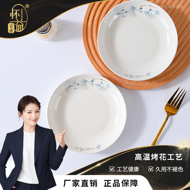 银杏时光高颜值餐盘陶瓷盘子家用碗碟套装高级感高温烤花碟子菜盘