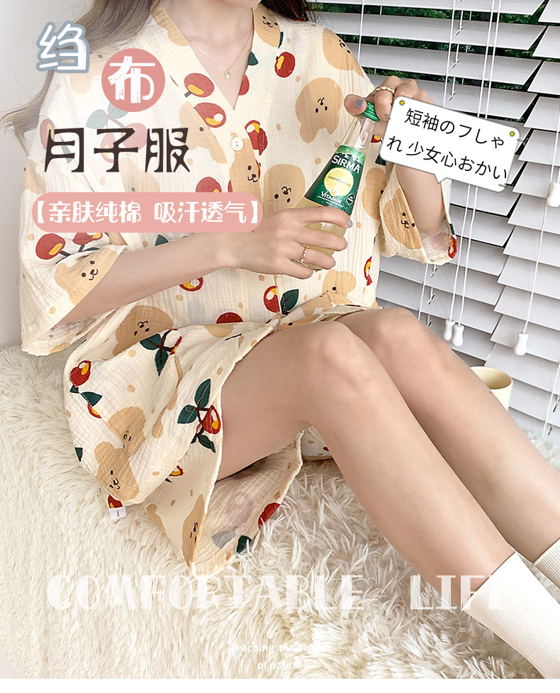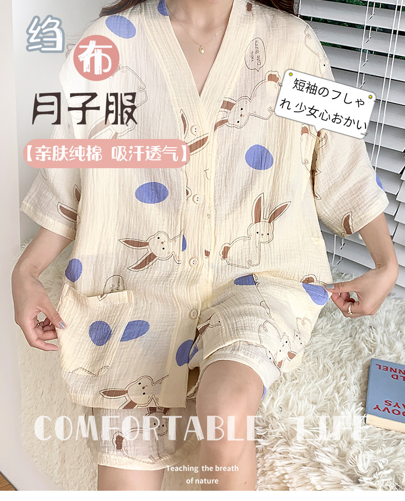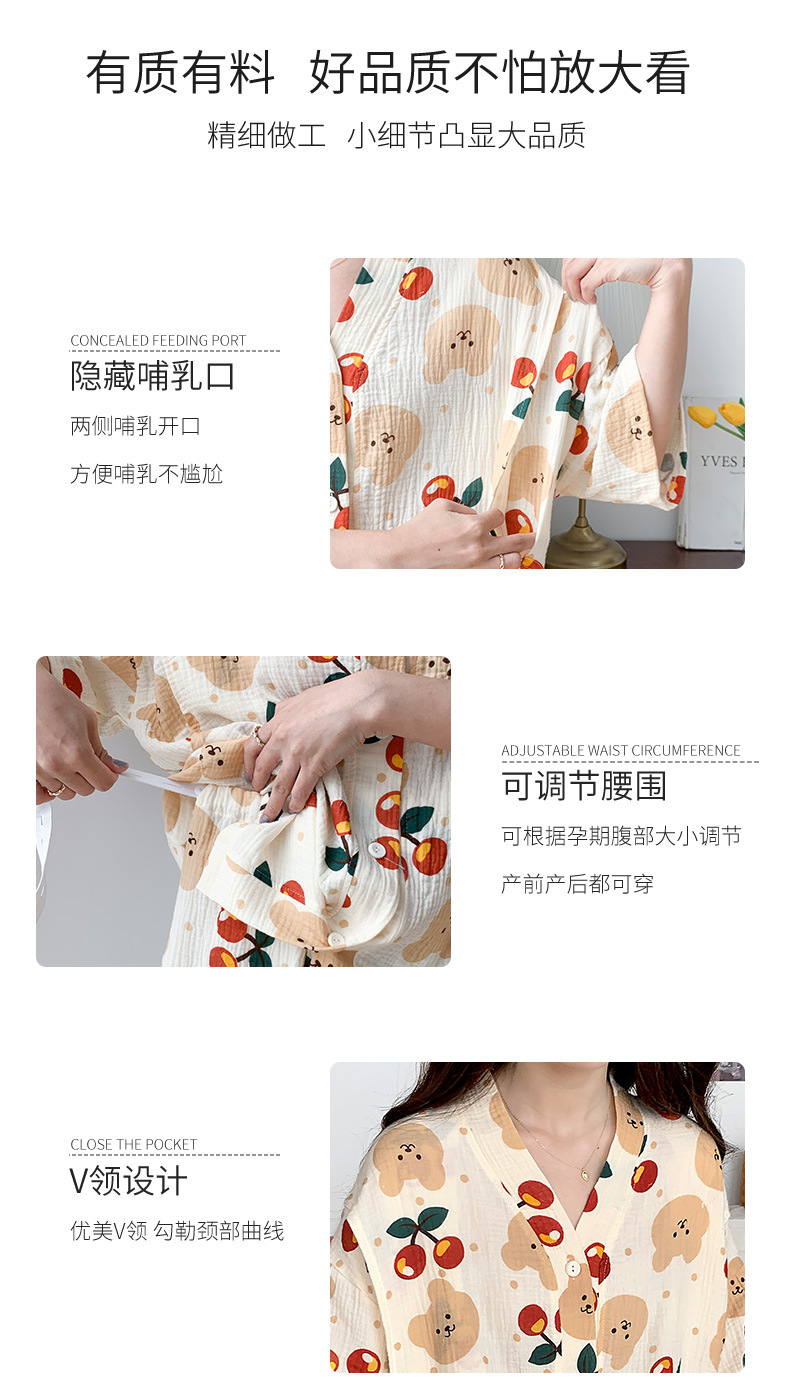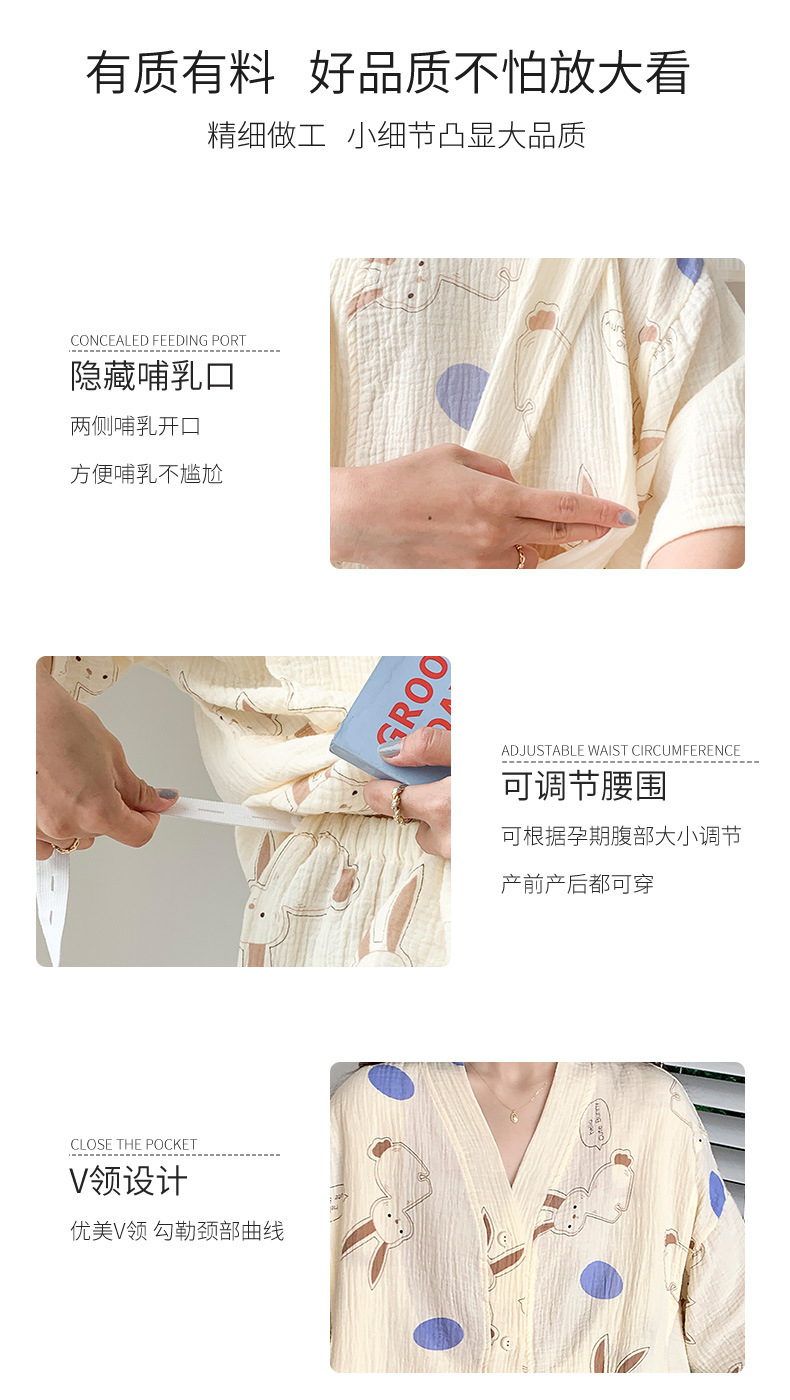 2024純綿夏半袖縮みガーゼ月子服二重妊婦パジャマ哺乳セット産後授乳服