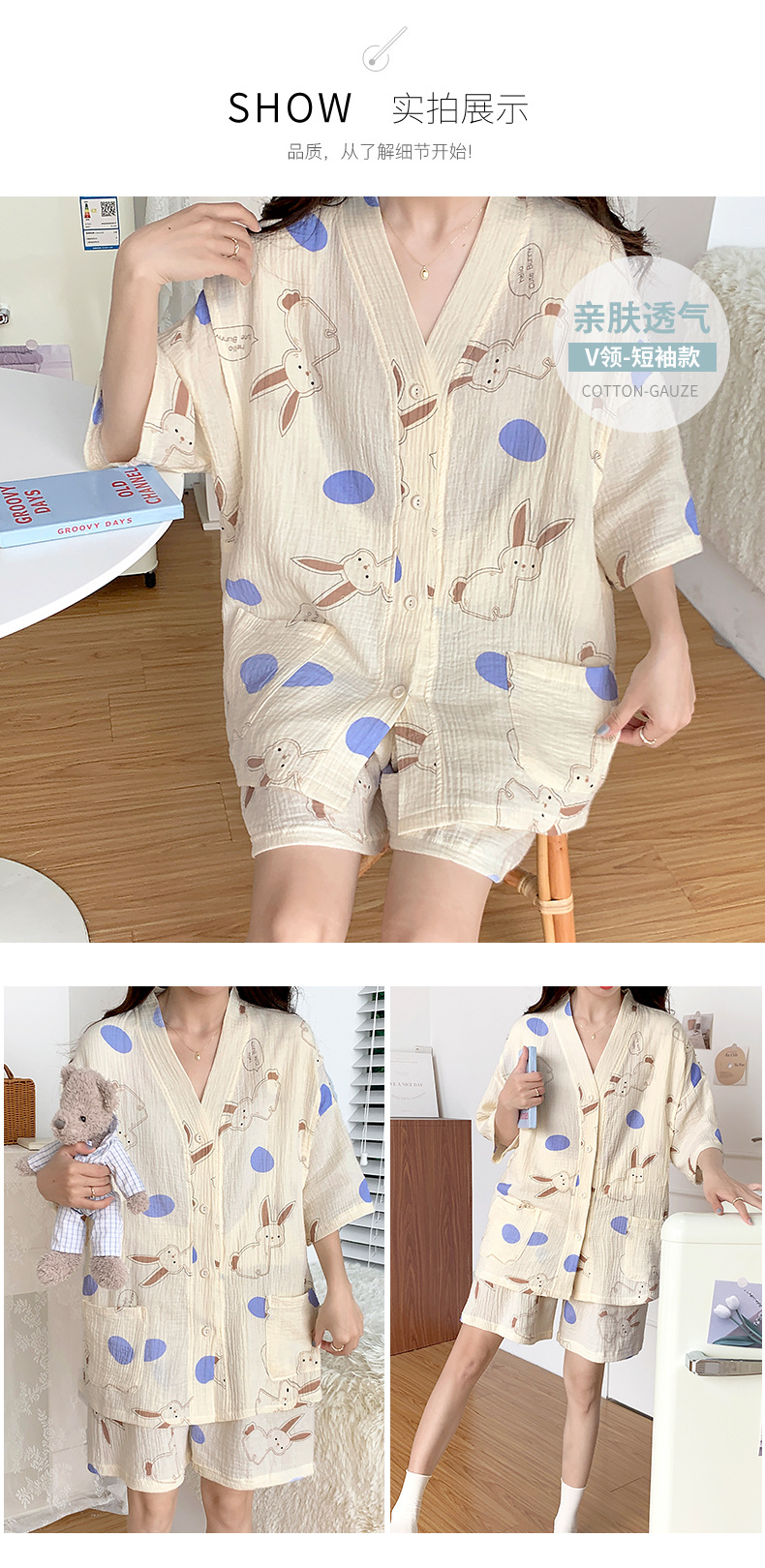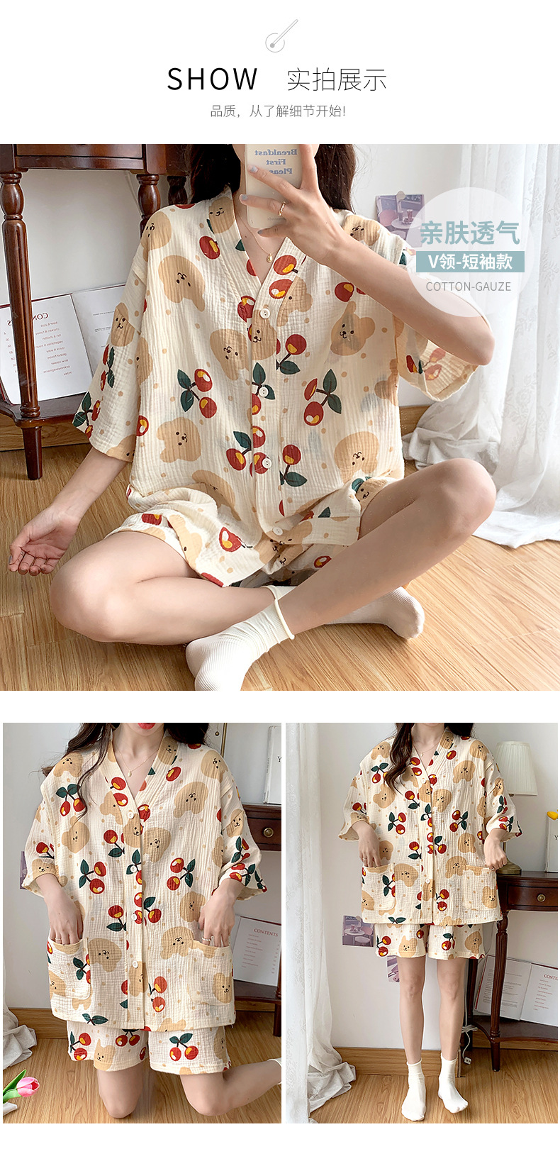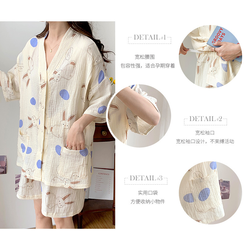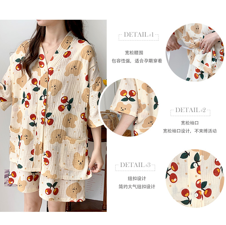 2024純綿夏半袖縮みガーゼ月子服二重妊婦パジャマ哺乳セット産後授乳服