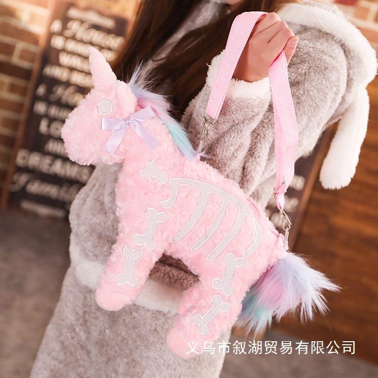 クリエイティブパンク風ユニコーンショルダーバッグぬいぐるみ大サイズぬいぐるみ人形人形誕生日プレゼント卸売り