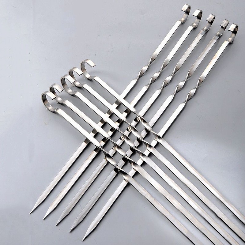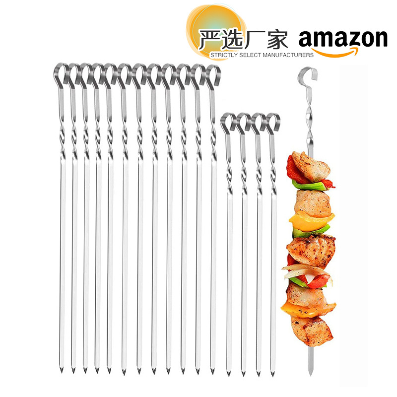 跨境同款BBQ不锈钢扭纹签方串家用户外扁签烧烤针撸羊肉串烤肉串