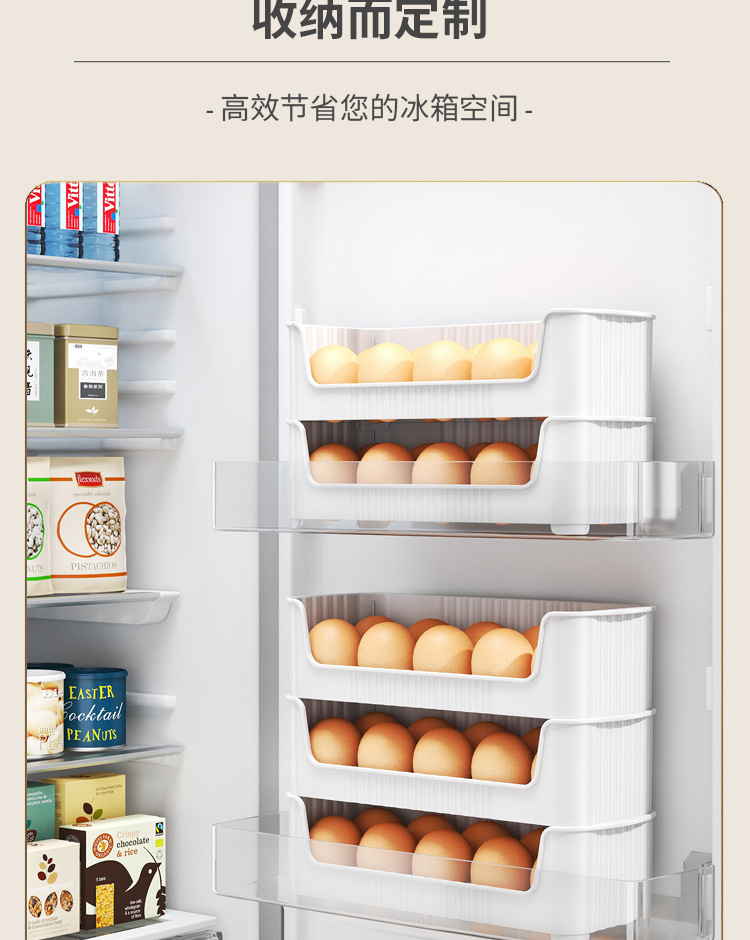 冷蔵庫用クロスボーダー卵パック、特別なサイドドア卵収納ラック、キッチン特別な卵トレイ、多層卵保存ボックス