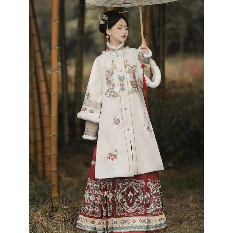 秋冬金明製加毛保温漢服交襟短衣比甲加毛馬面スカートセット古装超仙漢服