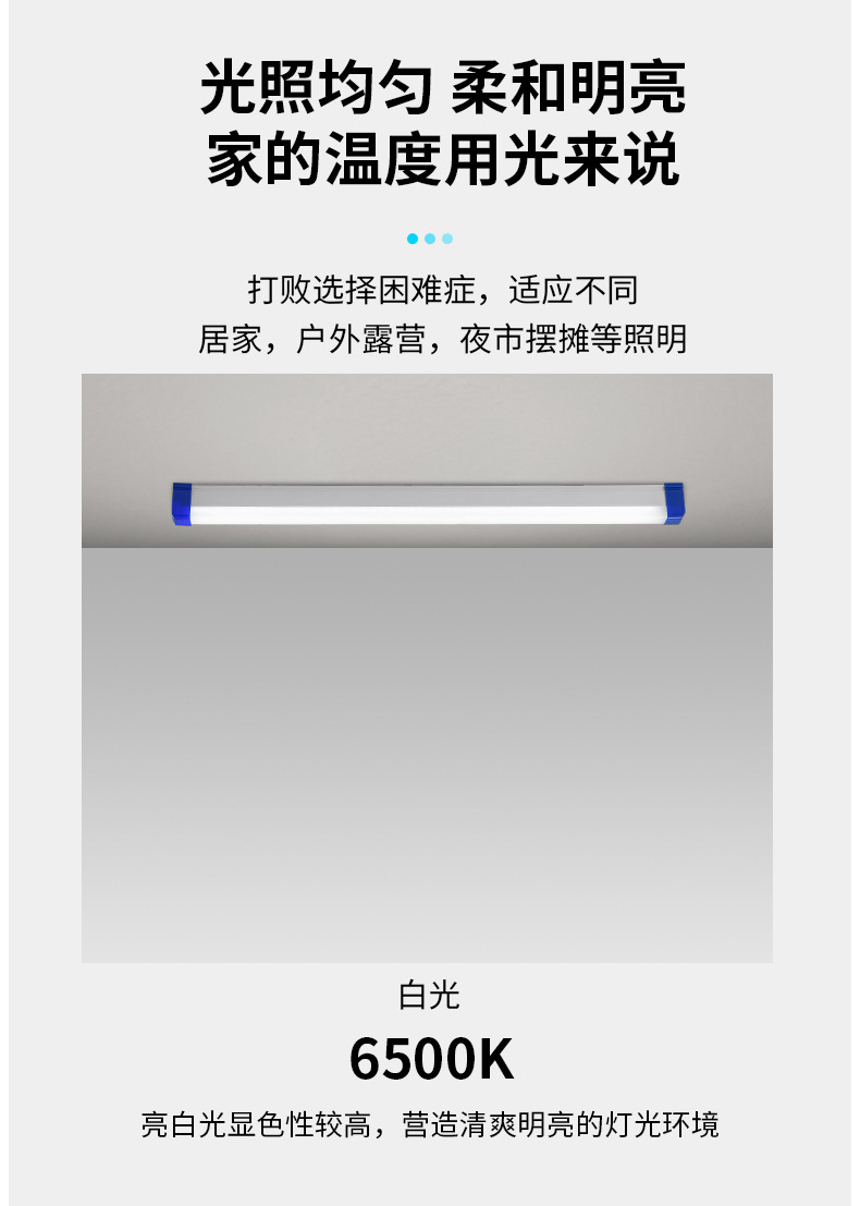 USB充電式ライトチューブ、磁気吸着式吊り下げ、高輝度、夜市屋台用、電池式、停電時緊急照明、LEDデイライトチューブライトバー