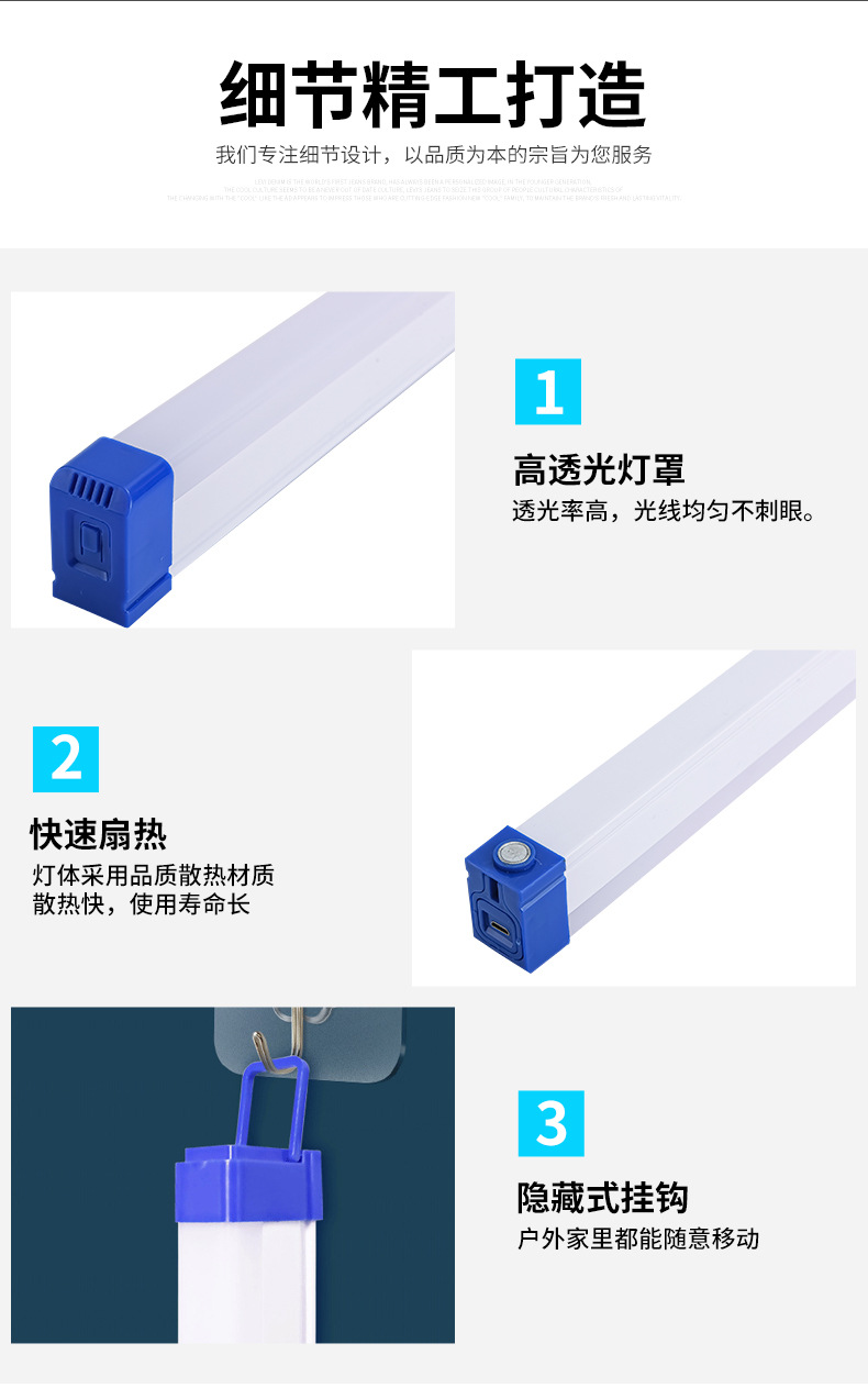 USB充電式ランプ磁気サスペンションハイライトナイトマーケット屋台バッテリー停電非常照明LED昼光管ライトストリップ