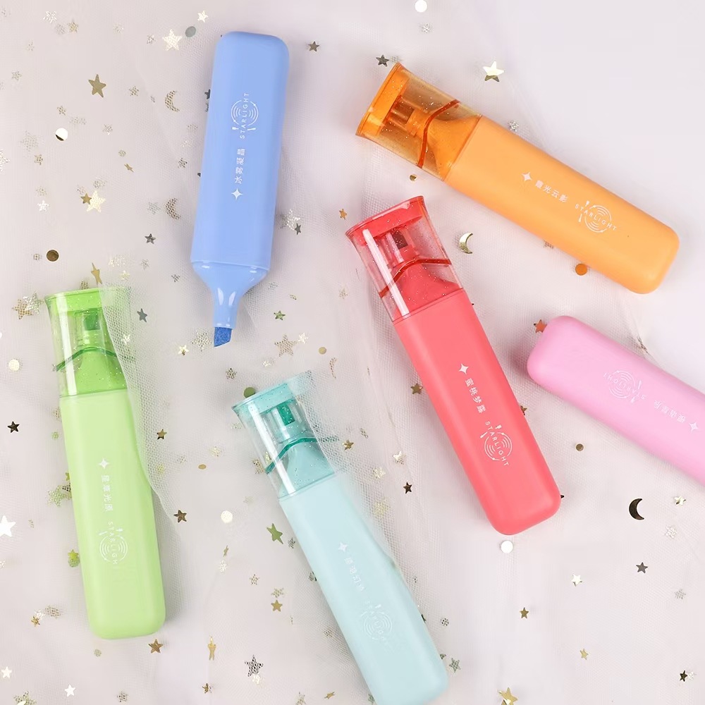 集物社7261细闪光荧光笔高颜值亮晶晶学生手账记号笔跨境套装