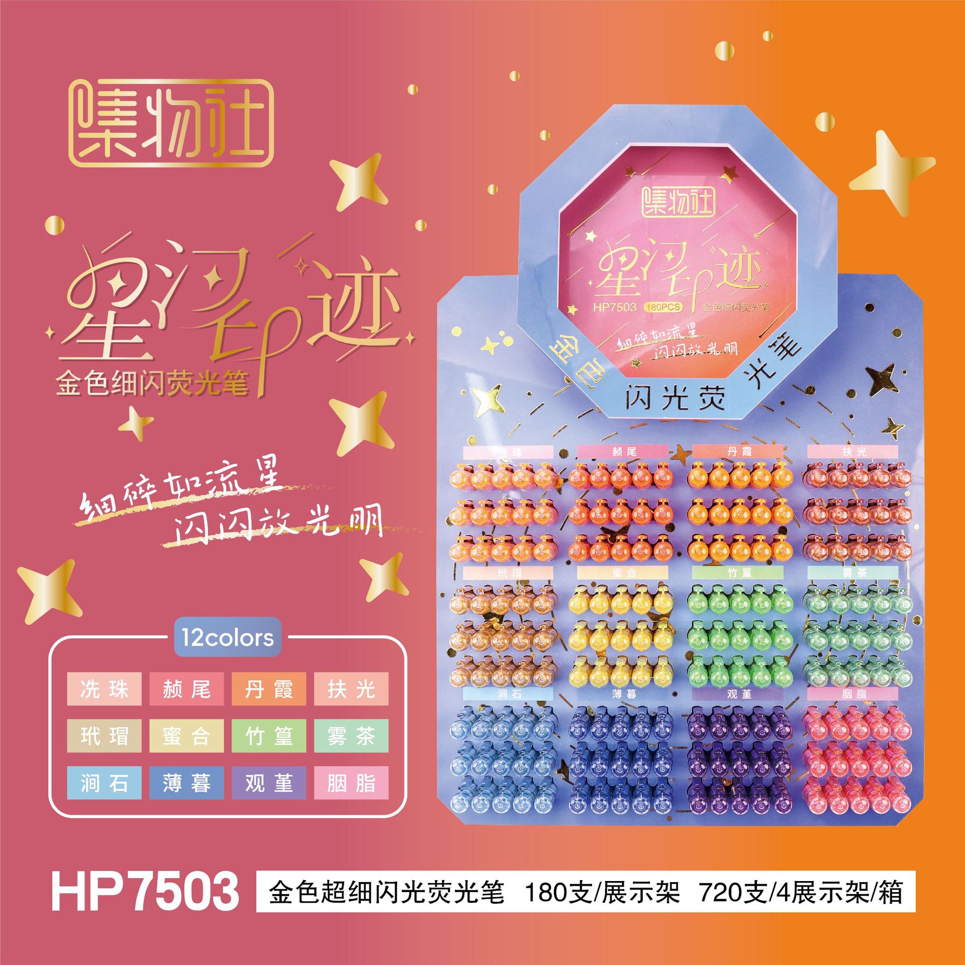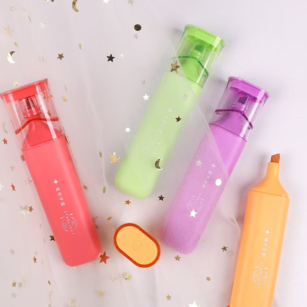 集物社文具硬头护眼色荧光笔星雨甜梦高颜值标记手账笔镭射亮面笔