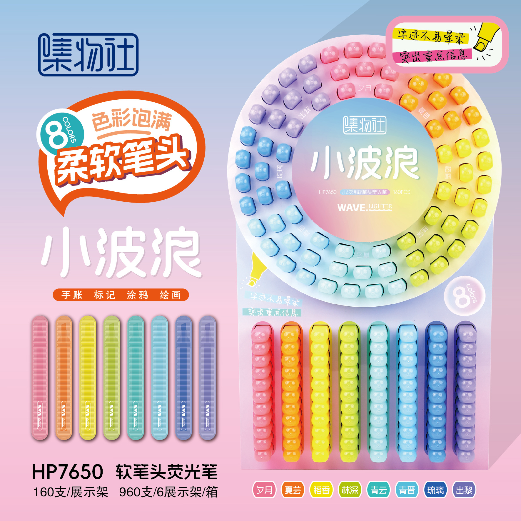 集物社050S大容量目保護色超ソフトヘッド蛍光ペン140スタンド装学生マーク絵筆