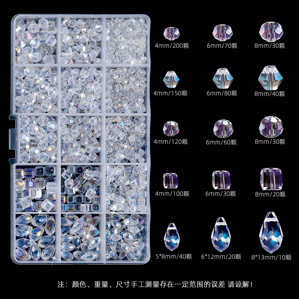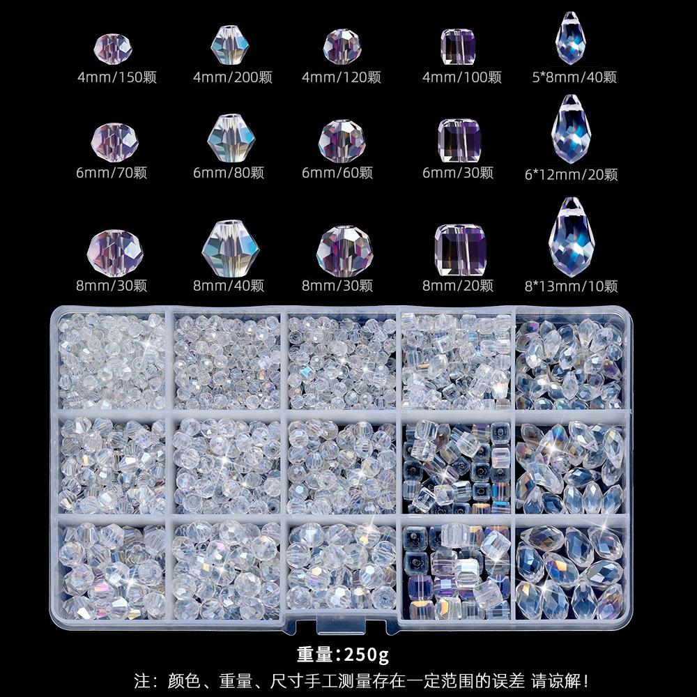 クロスボーダー15グリッド電気メッキABクリスタルガラスビーズセットDIYブレスレット素材パックボックス菱形ビーズ角型ビーズ
