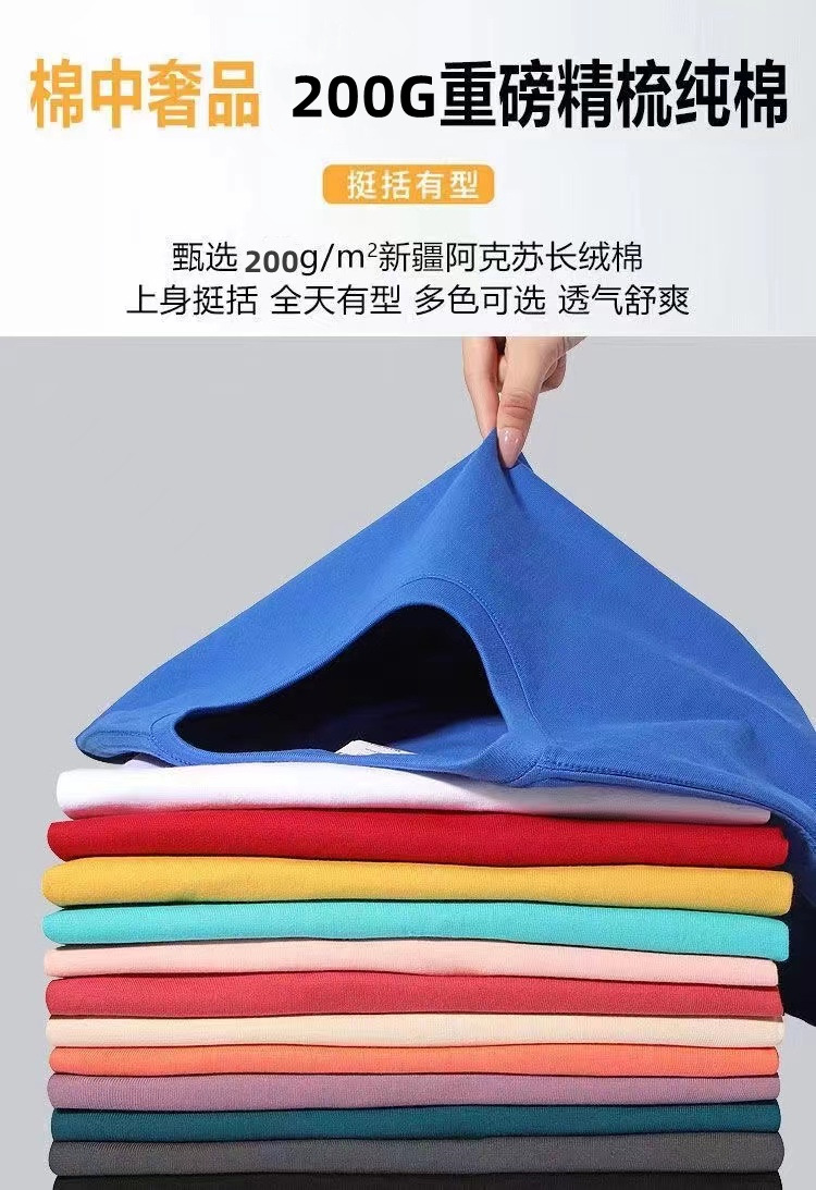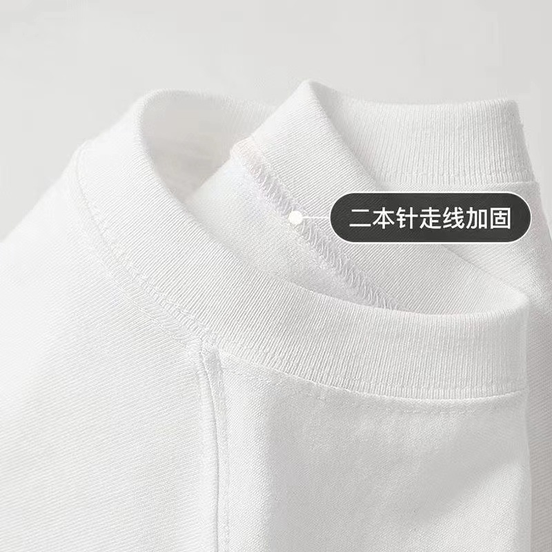 クロスボーダー200g新疆精櫛綿包襟辺半袖tシャツ男女夏ゆるい大サイズ純白長袖学生