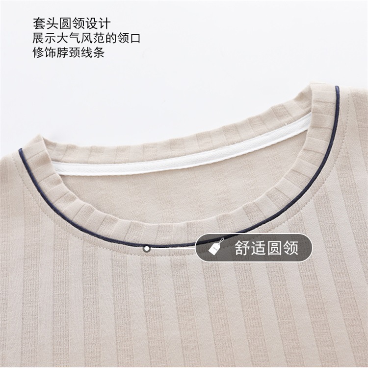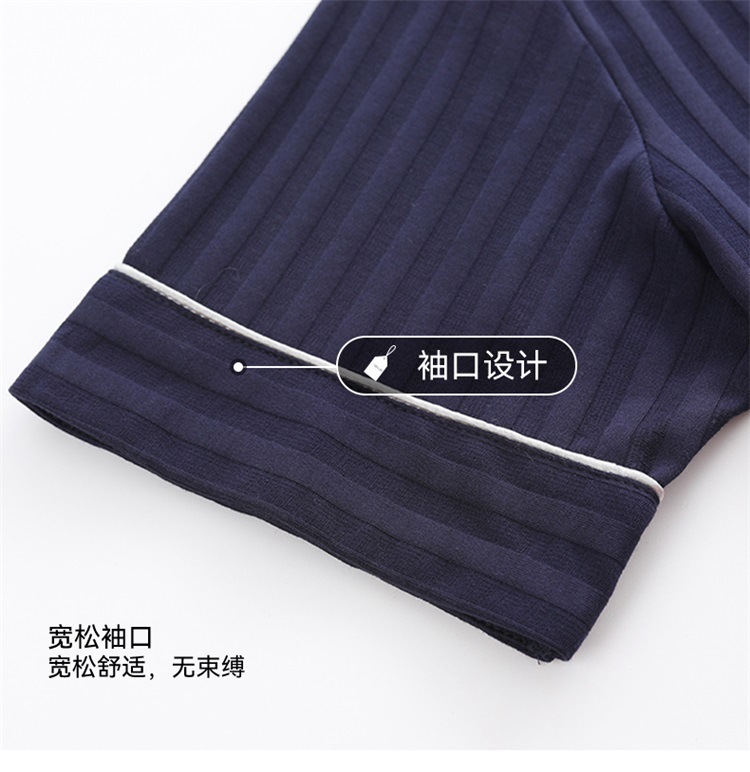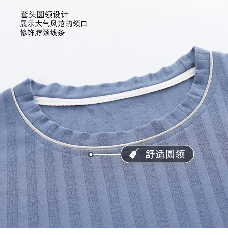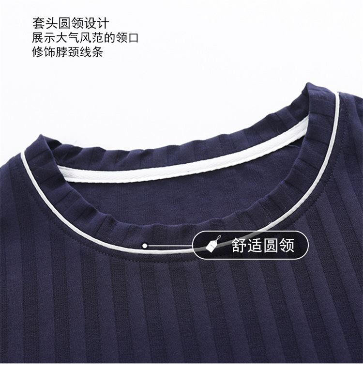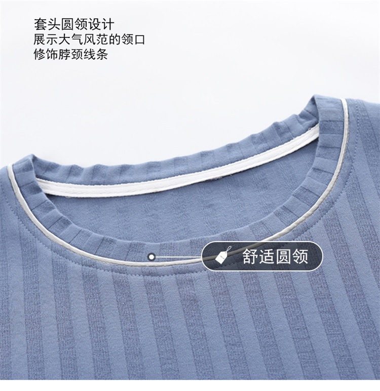 2024年の新型のパジャマの女性の夏の半袖の薄いストライプのカジュアルな外はパジャマのゆったりしている妊婦の部屋の服を着ます。