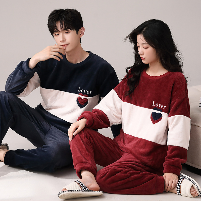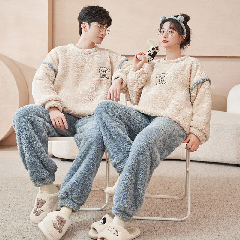 2025年に新型サンゴの毛が厚くなって、冬のパジャマカップルのカジュアル秋冬の家庭服セットに出かけることができます。