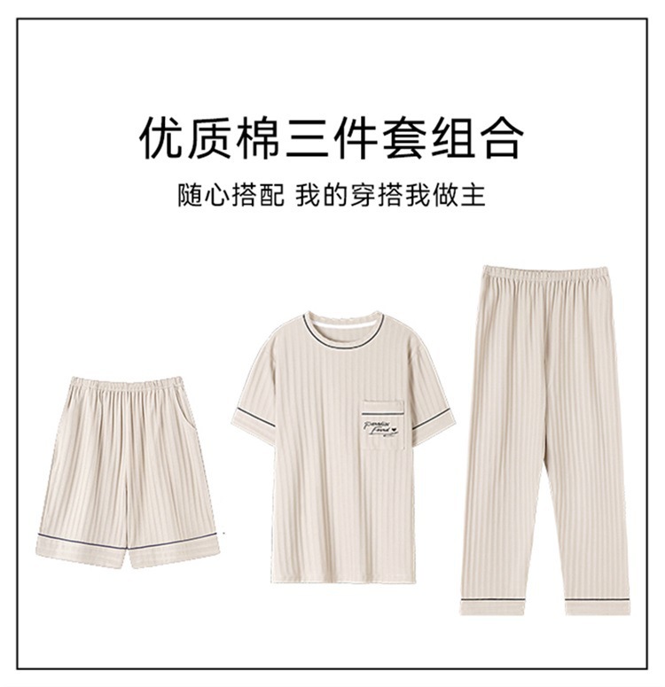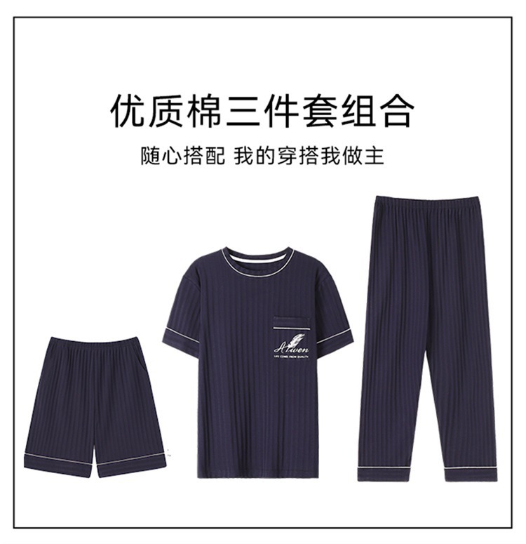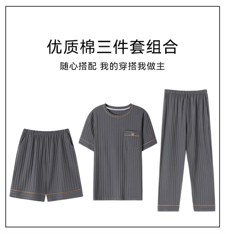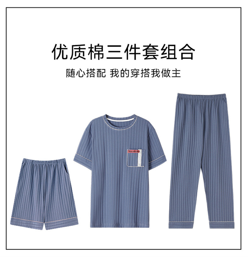 メンズ三点セットパジャマ新品春夏コットン丸首半袖長ズボンゆったり大きいサイズホームウェアセット